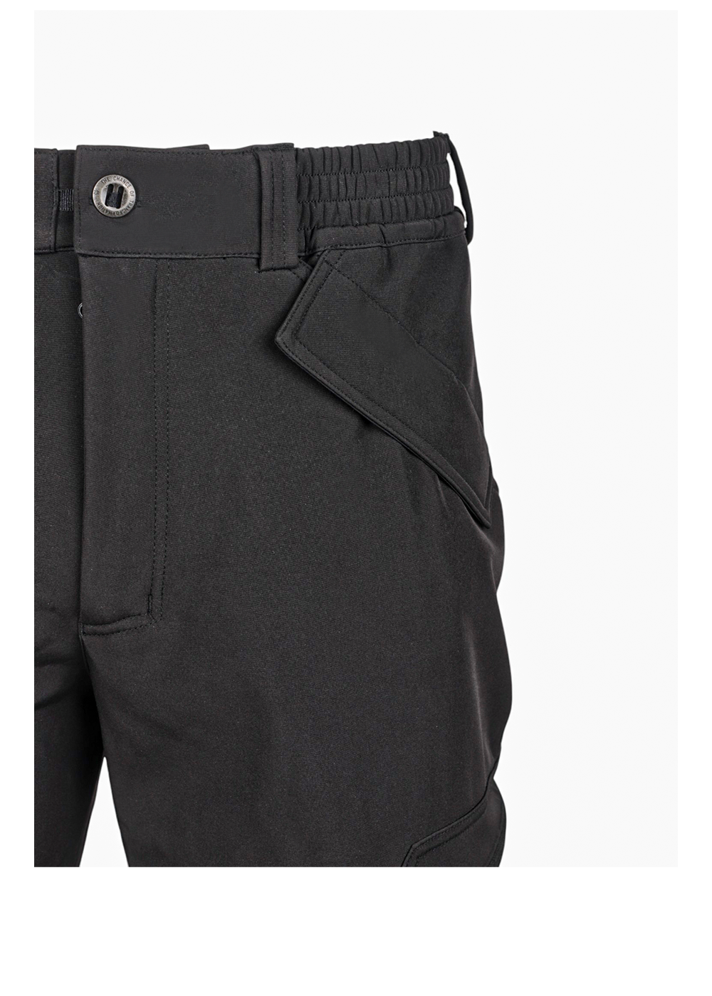 Модель оснащена множеством функциональных элементов: глубокими боковыми и передними карманами, скрытыми D-кольцами для крепления аксессуаров, удобной застежкой на пуговицу канадского типа с лентой-контактом. Особое преимущество — регулируемые манжеты в нижней части с молнией и прорезиненной застежкой, что делает брюки идеальными для использования с лыжными ботинками или высокими берцами. Боковые вентиляционные отверстия с сеткой обеспечивают оптимальный микроклимат.