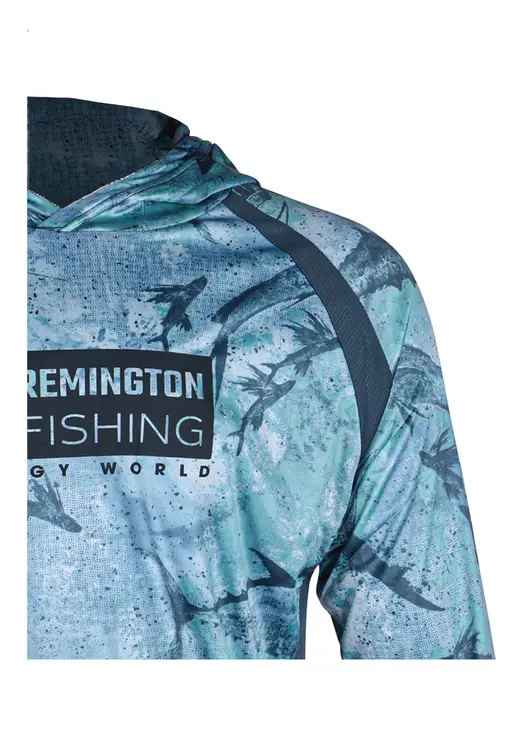 Футболка (джерси) Remington Fishing Вreeze Вlue изготовлена из тонкого полиэстера, это быстросохнущий материал, прекрасно отводящий влагу от тела, за счет чего модель можно использовать в качестве первого слоя при работе с мембраной. Ткань имеет защиту от солнца UPF 50+ надежно защищая от агрессивных солнечных лучей. Втачной капюшон позволит в нужный момент защитить голову от солнца. Яркий принт и логотип на груди подчеркивает приверженность к бренду.