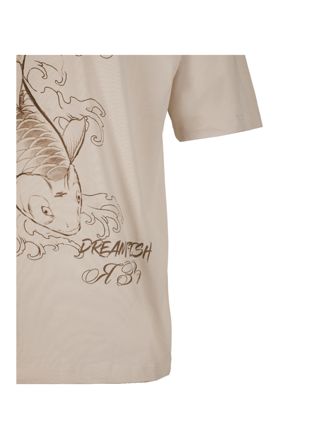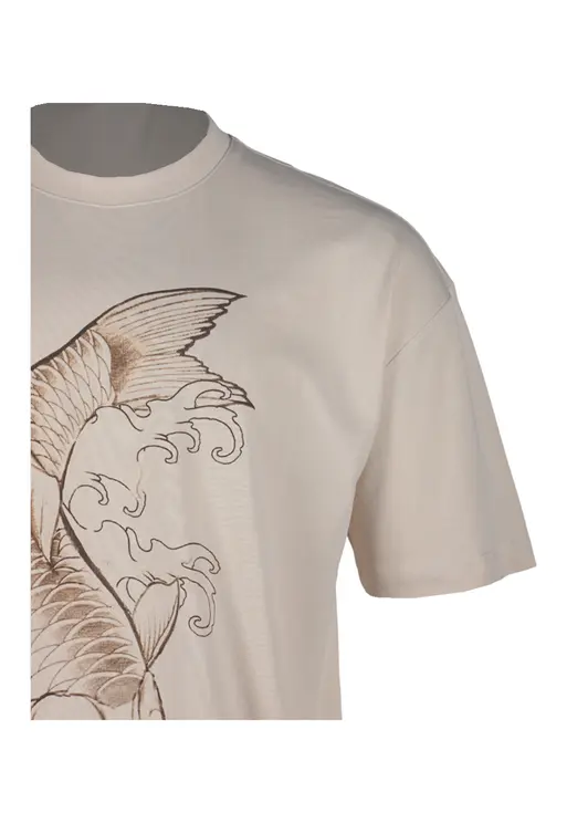 Футболка летняя Remington Fish Beige сразу привлекает внимание благодаря крупному выразительному принту, в котором угадывается стилизованное изображение рыбы язь. Дизайн подойдёт как для повседневного образа, так и для тематических выездов на природу.