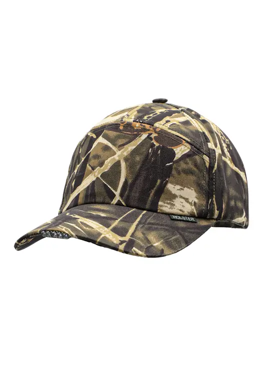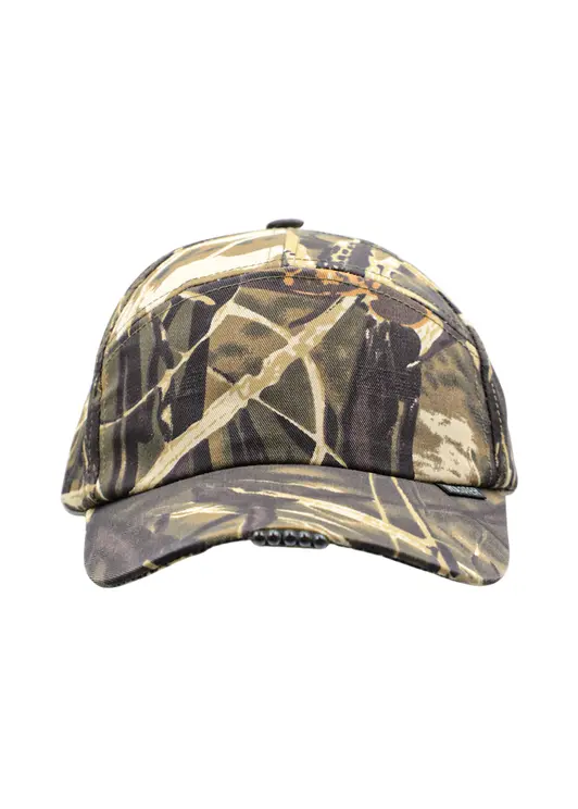 Уникальная бейсболка со встроенным в козырек фонариком из 5 светодиодов, соединенных с блоком питания, находящимся во встроенном кармашке подклада, питание осуществляется от двух сменных батареек - таблеток, кнопка вкл/выкл удобно размещена на самом козырьке.