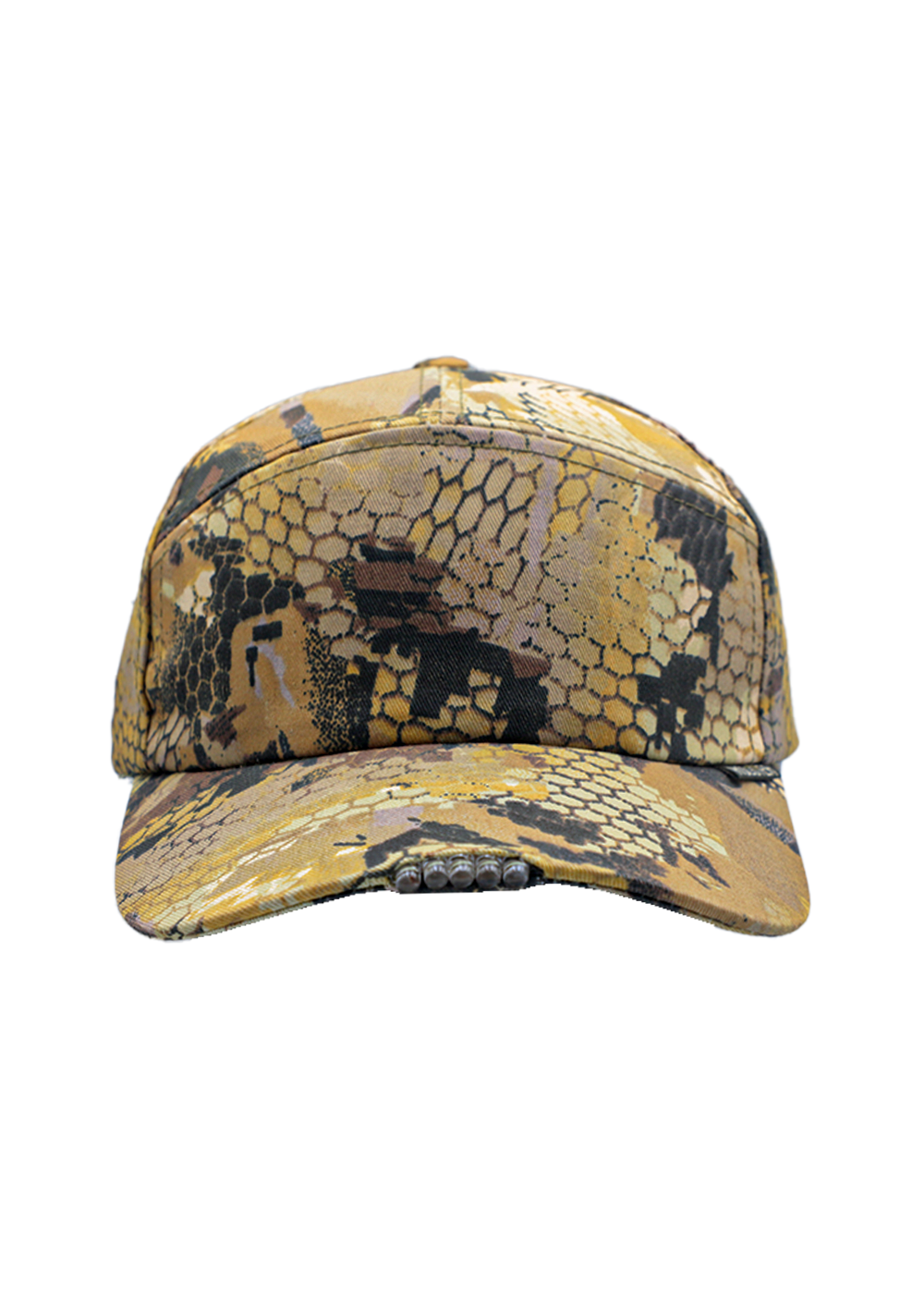 Уникальная бейсболка  со встроенным в козырек фонариком. В козырек встроен портативный фонарик из нескольких светодиодов, соединенных с блоком питания, находящимся во встроенном кармашке подклада. Питание осуществляется от сменных батареек - таблеток, кнопка вкл/выкл удобно размещена на самом козырьке