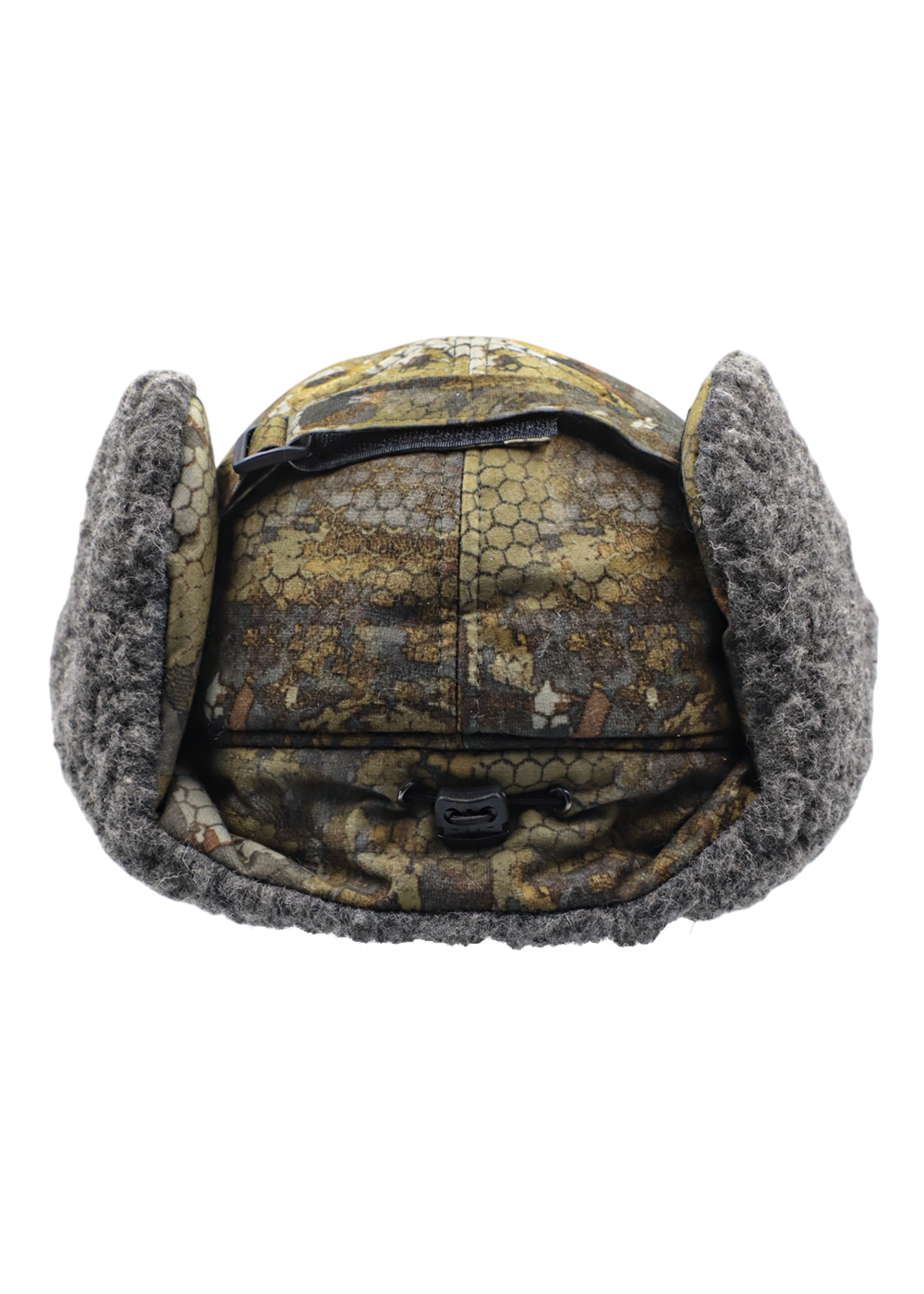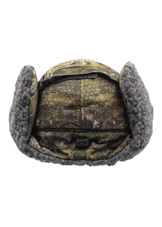 Внутренняя часть изделия отделана искусственным мехом под овчину, который эффективно защищает от холода уши, щёки и затылок. Широкий козырёк обеспечивает надёжную защиту от снега, измороси и солнечных лучей, что особенно важно при ведении охоты или рыбалке.