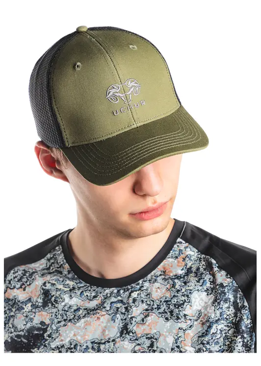 - Дизайн: логотип бренда UCHUR на передней части кепки.
