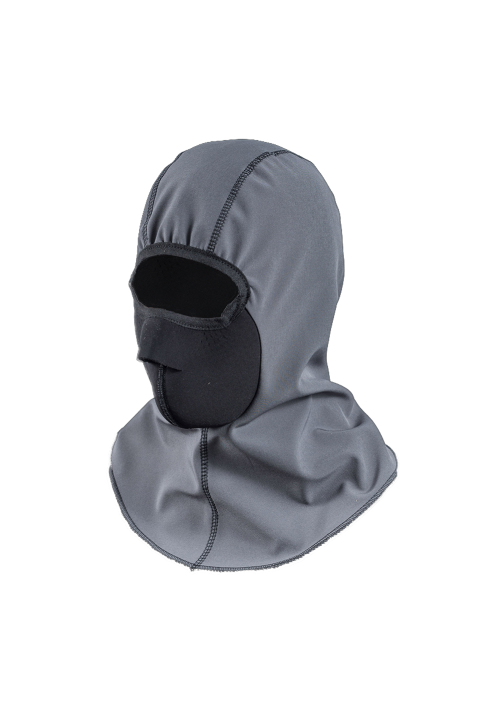 Шлем-маска Полюс из бондинга в сером цвете — это идеальный выбор для защиты головы, шеи, плеч и лица от ветра и холода во время активного отдыха и зимних видов спорта.