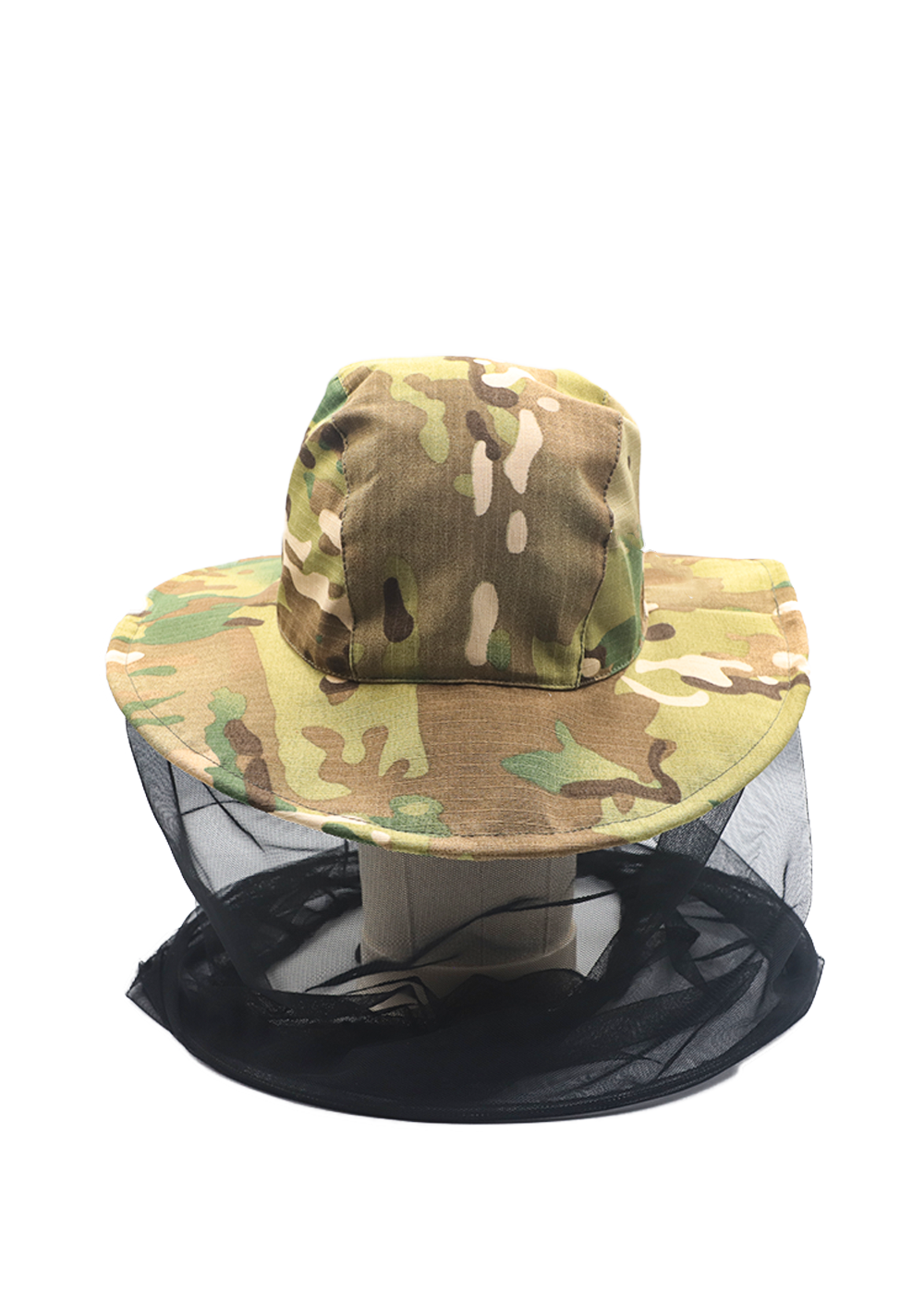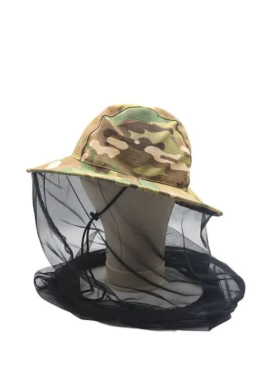 Головной убор с широкими полями, обеспечивающий полную защиту от комаров, москитов, ос и пчел. Изготовлен из смесовой ткани рипстоп в камуфляжном цвете Мультикам.