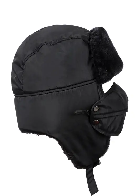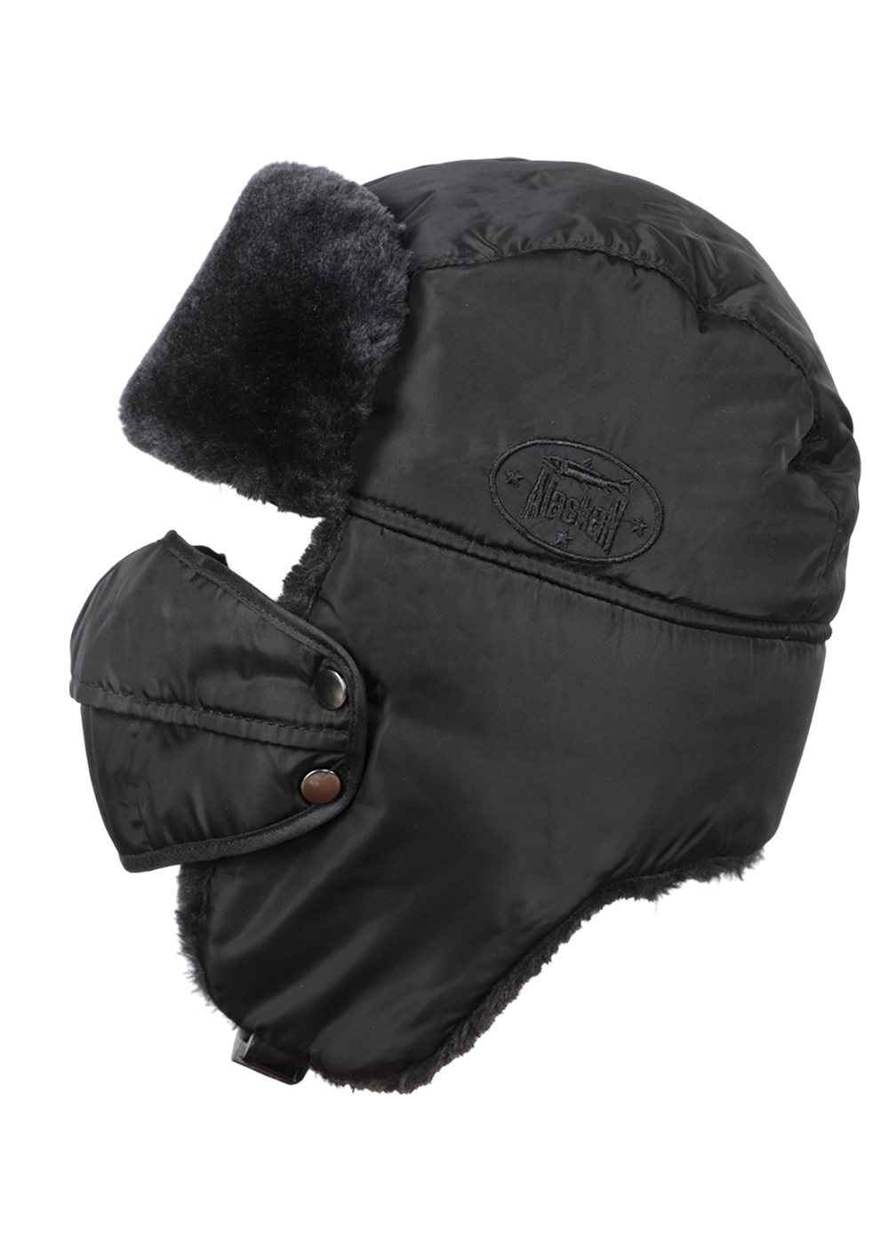 Тёплая зимняя шапка-ушанка Alaskan Dog Salmon с маской чёрного цвета — практичная модель для холодной и ветреной погоды, популярная среди охотников, рыболовов и любителей активного отдыха. Изделие выполнено из 100% полиэстера с водоотталкивающей пропиткой Water Resist, утеплено синтепоном и дополнено подкладкой из искусственного меха. Модель оснащена съёмной маской с двумя вариантами крепления: на кнопках к шапке или на эластичных петлях на ушах. Маска оборудована хлопковой подкладкой и вентиляционным отверстием для дыхания. Опускающиеся «уши» фиксируются под подбородком, надёжно защищая уши и шею от холода. Универсальный размер обеспечивает комфортную посадку.