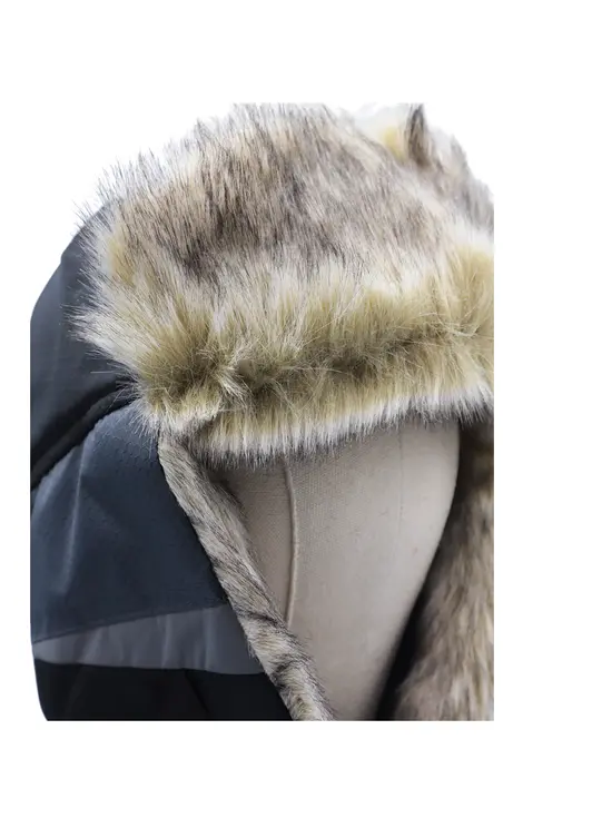Конструкция шапки предусматривает два варианта ношения: с зафиксированными под подбородком ушами или собранными наверх с помощью фастекса. Для комфортной посадки предусмотрена утяжка на затылке с регулируемым пуллером. В комплект входит защитная маска из плотного флиса для защиты нижней части лица от ветра и холода.