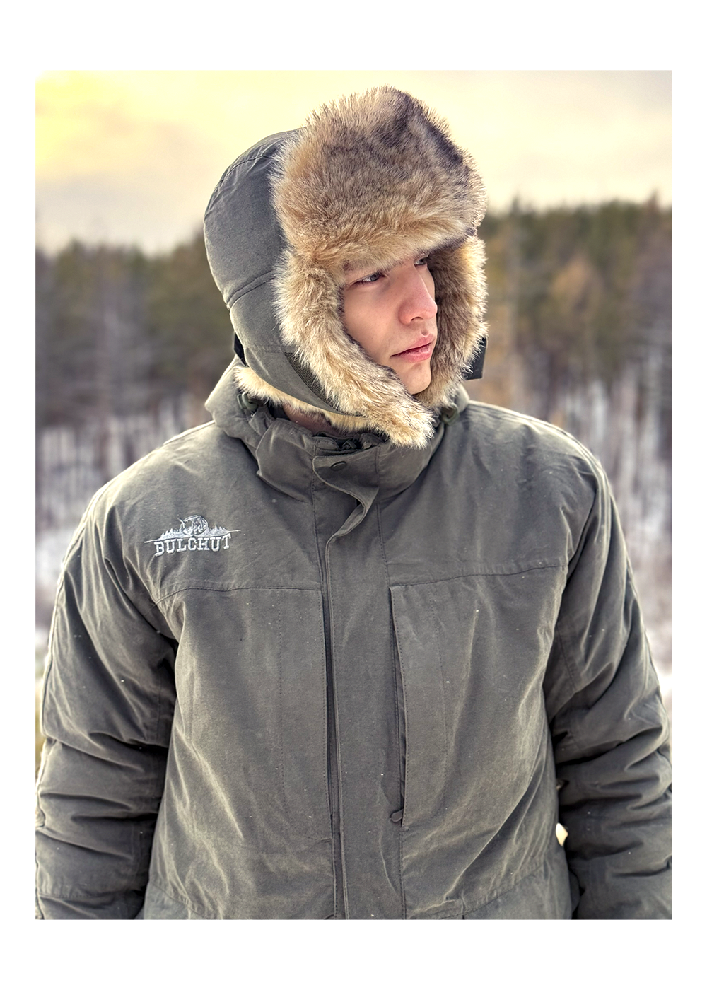 Шапка-ушанка с маской «Bulchut» — это утеплённый головной убор премиум-класса для эксплуатации в условиях экстремального холода. Модель выполнена из высококачественной водоотталкивающей ткани Finlyandiya в практичном цвете хаки. Особенность модели — съёмная маска-балаклава, которая обеспечивает дополнительную защиту лица от холода и ветра. Регулируемые ушные клапаны позволяют настроить комфортную посадку по голове. Конструкция рассчитана на использование при температурах до -45°C, что делает шапку идеальным выбором для охоты, рыбалки и активного отдыха в суровых климатических условиях. Универсальная модель подходит как профессионалам, так и любителям зимнего времяпрепровождения, гарантируя надёжную защиту головы и лица от холода и ветра.