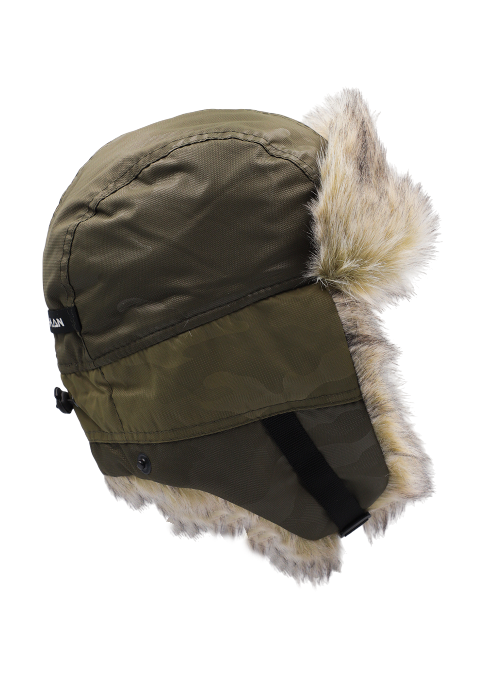 Конструкция шапки предусматривает два варианта ношения: уши можно зафиксировать под подбородком с помощью фастекса или собрать их сзади при помощи фастекса и кнопок. Для комфортной посадки предусмотрена утяжка на затылке с регулируемым пуллером.