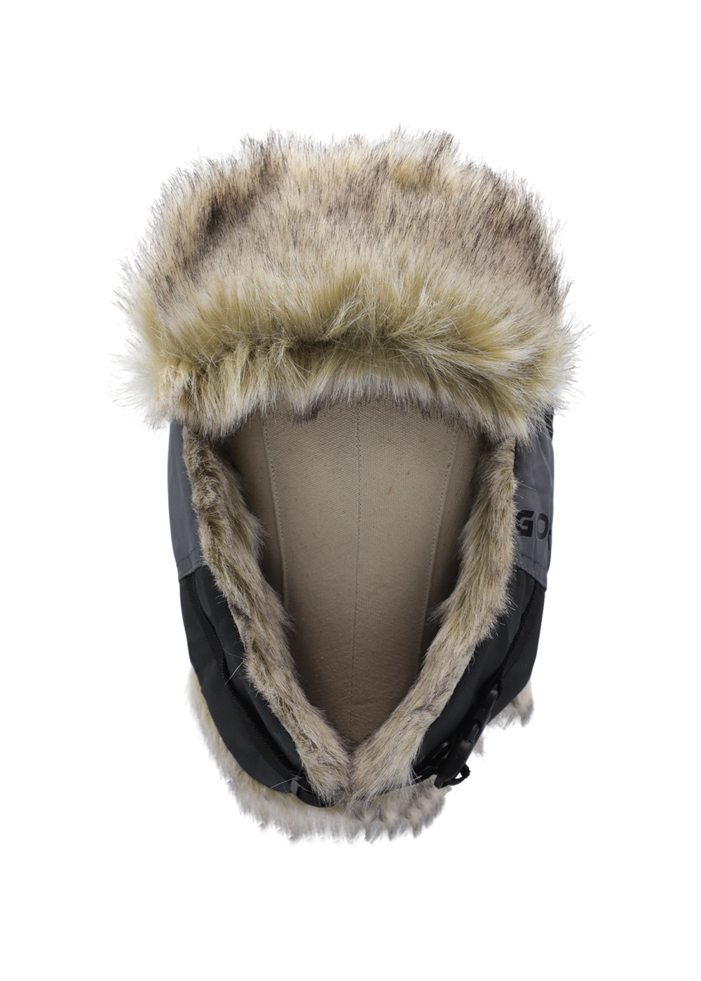 Конструкция шапки предусматривает два варианта ношения: уши можно зафиксировать под подбородком с помощью фастекса или собрать их сзади при помощи фастекса и кнопок. Для комфортной посадки предусмотрена утяжка на затылке с регулируемым пуллером.