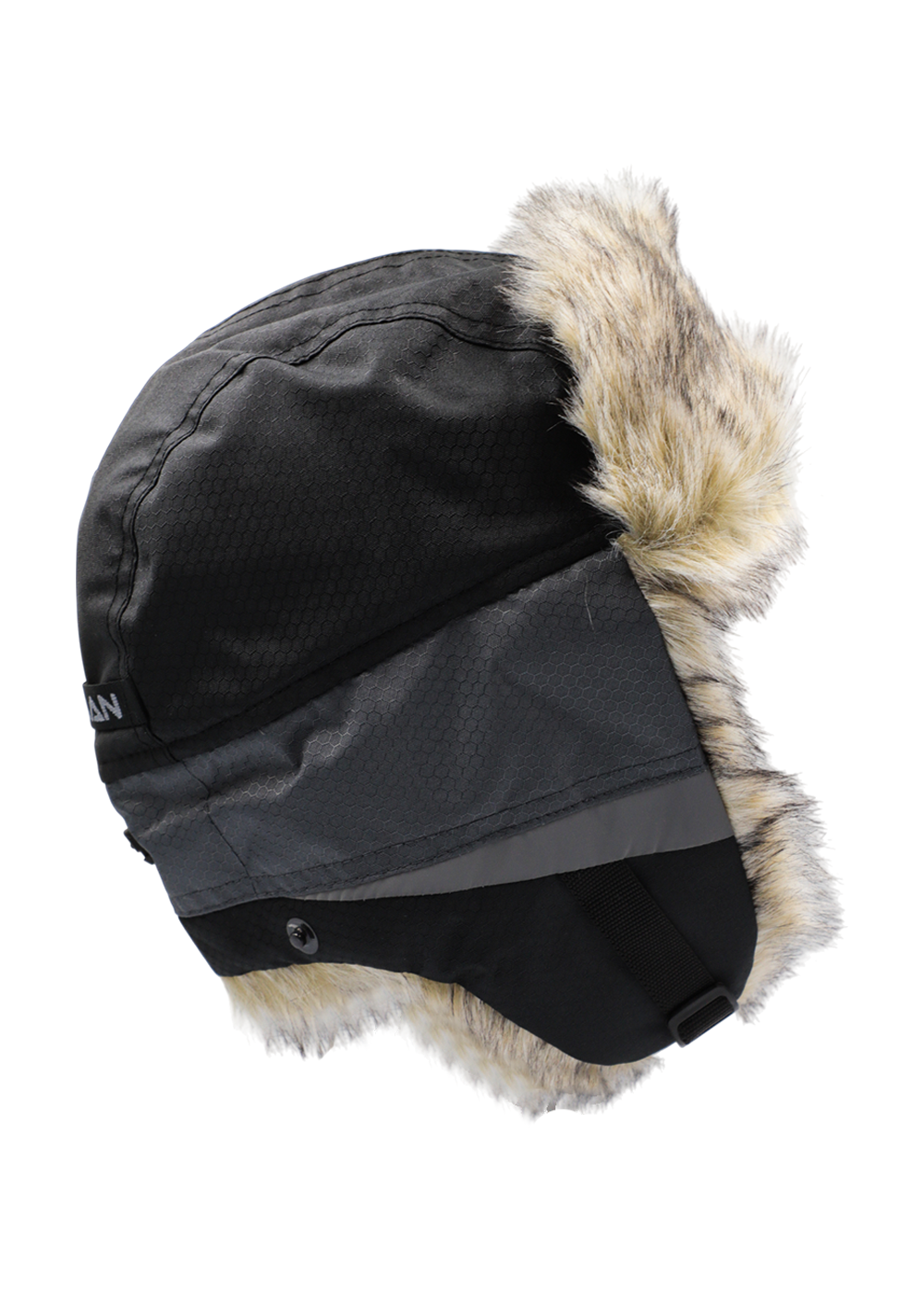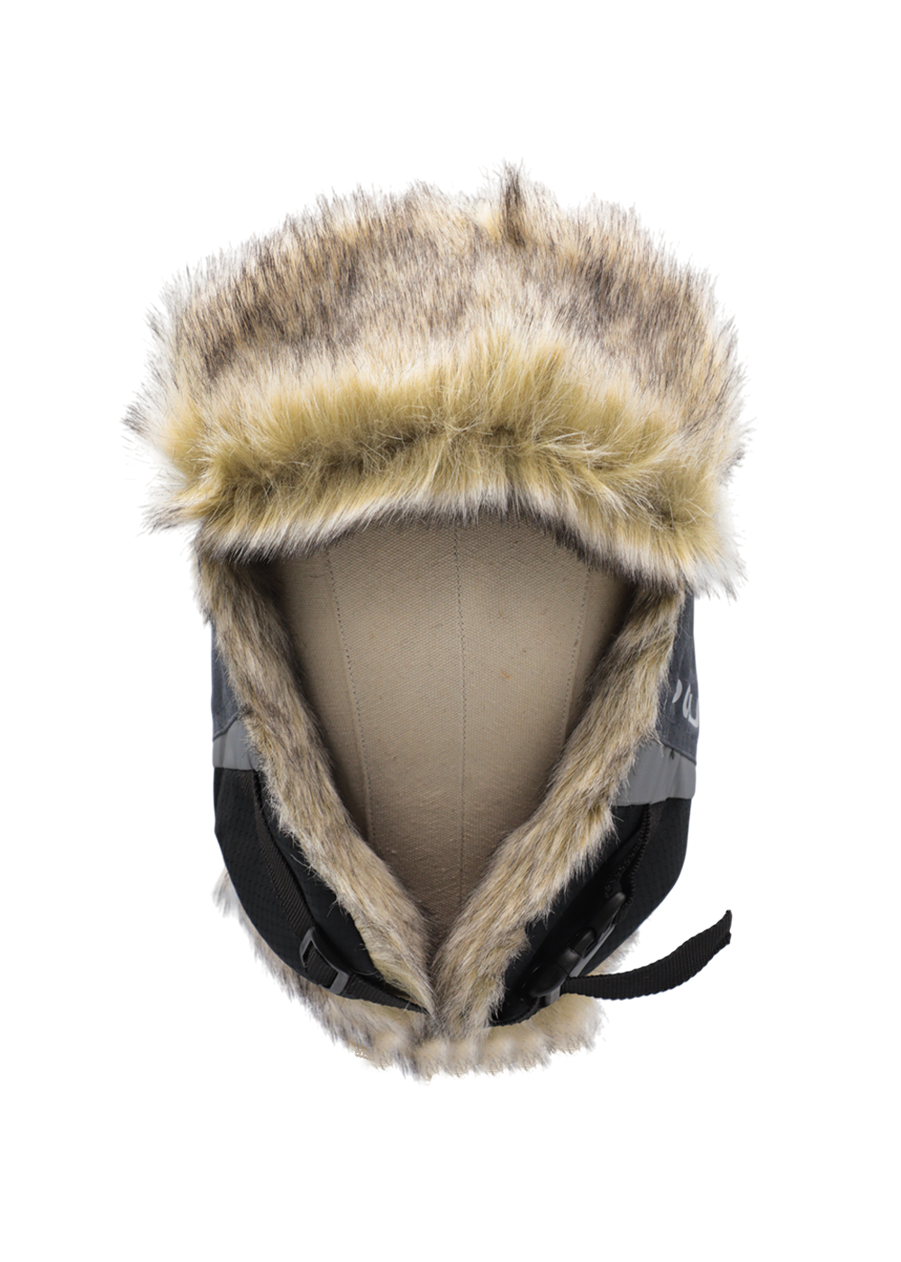 Конструкция шапки предусматривает два варианта ношения: с зафиксированными под подбородком ушами или собранными наверх с помощью фастекса. Для комфортной посадки предусмотрена утяжка на затылке с регулируемым пуллером. В комплект входит защитная маска из плотного флиса для защиты нижней части лица от ветра и холода.