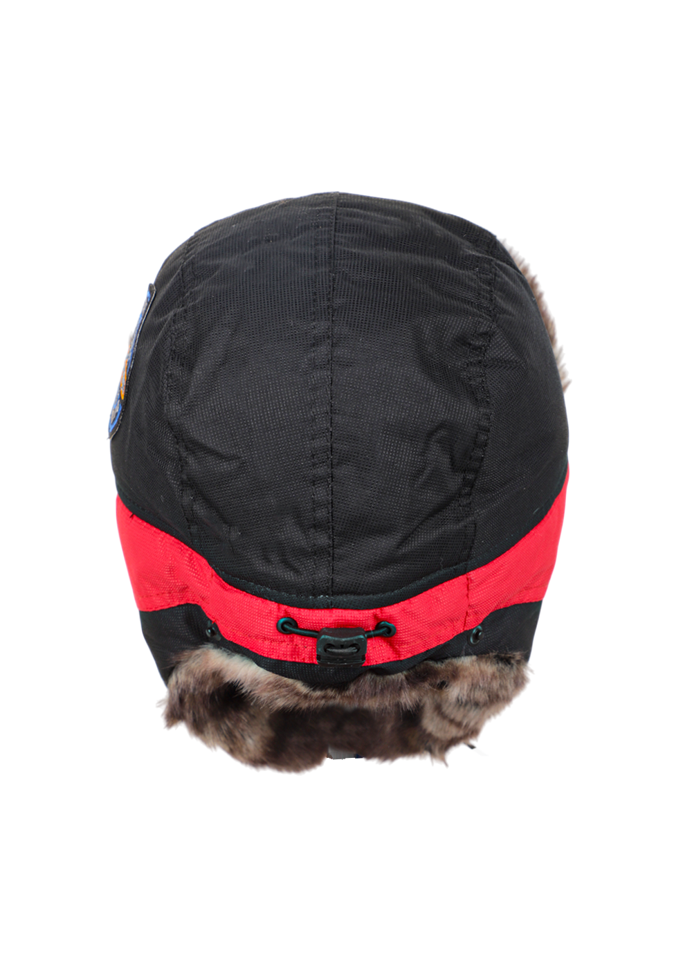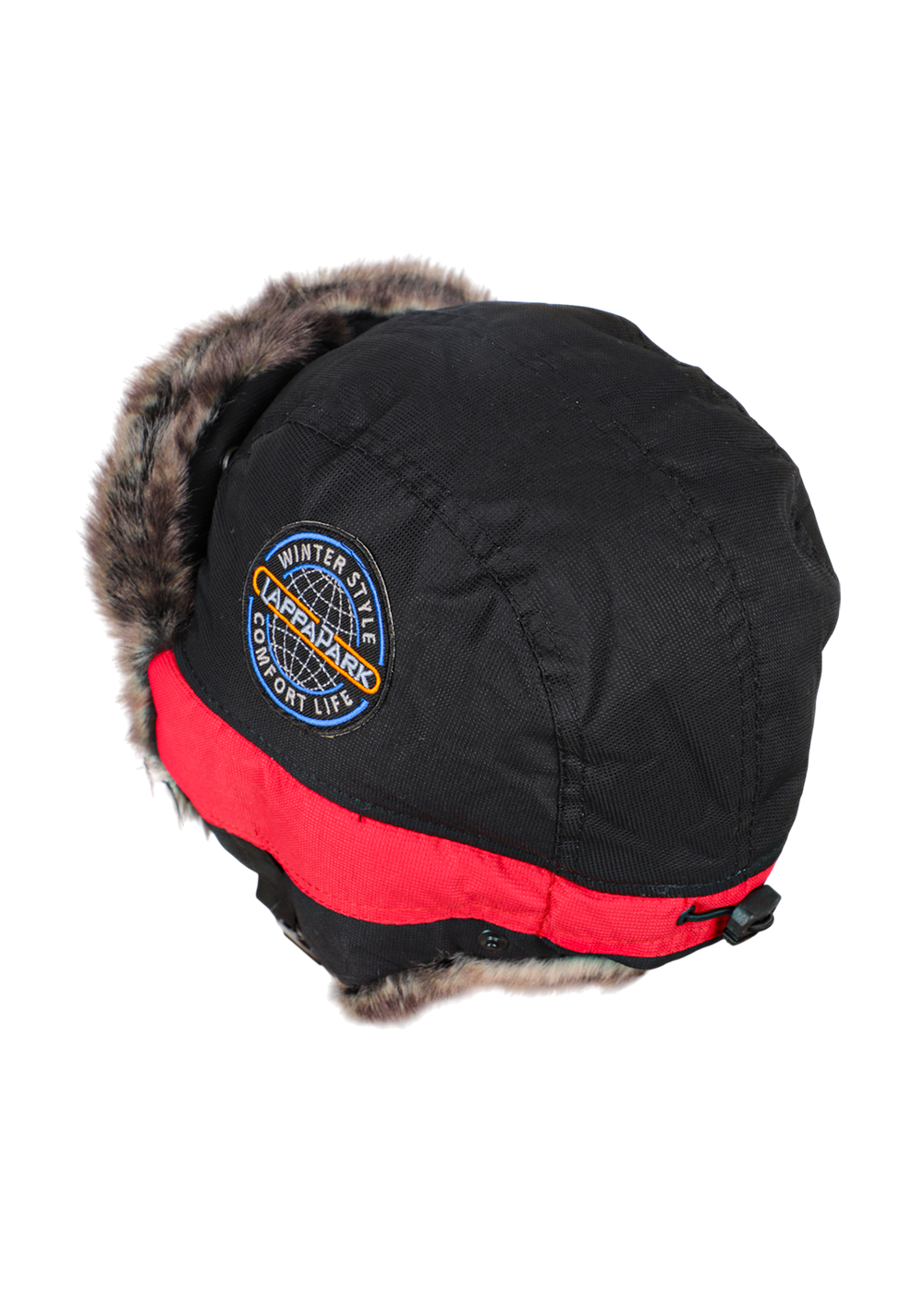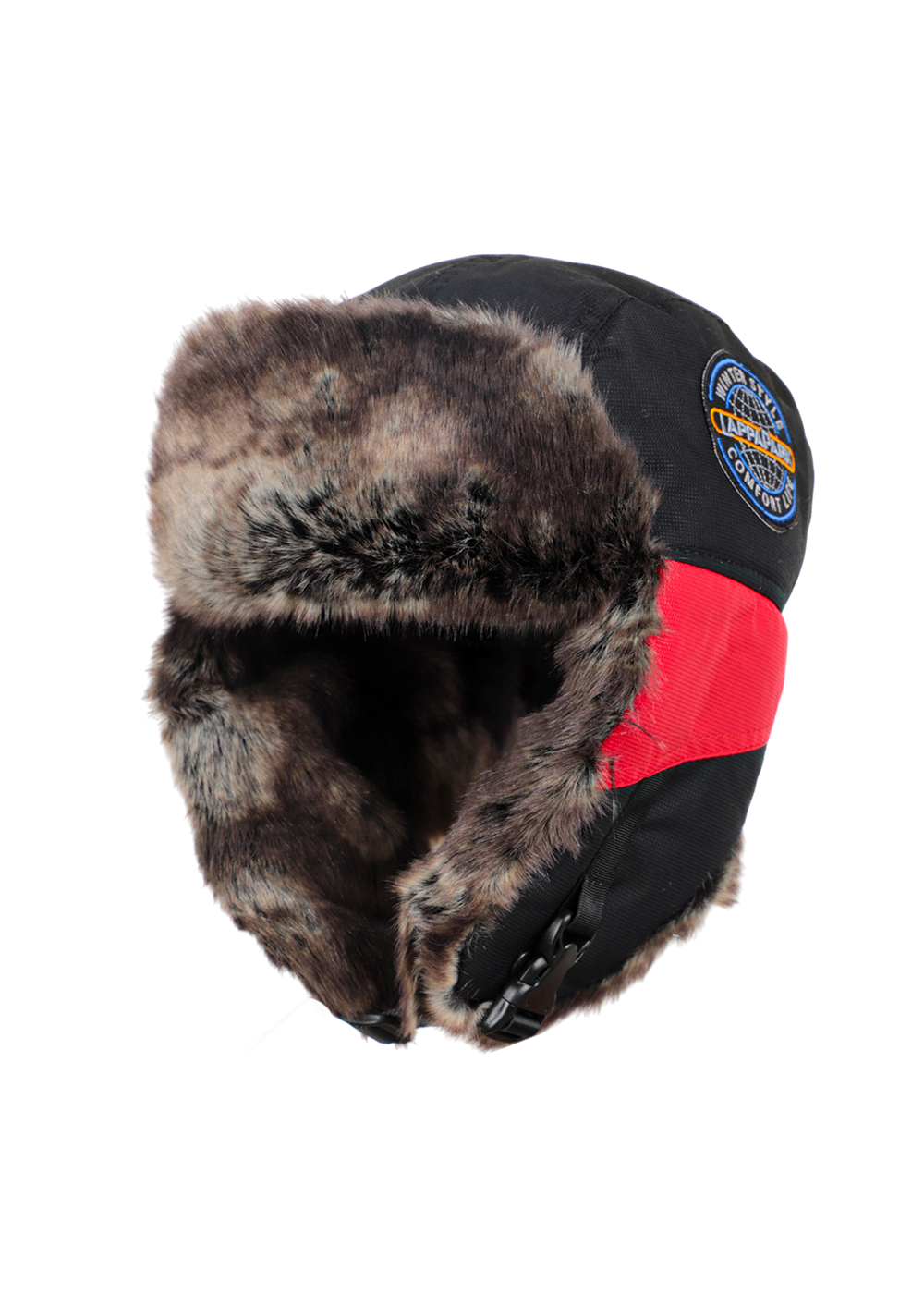 Ушанка Lahti + в черно-красной цветовой гамме с декоративной вставкой украшена отделкой из меха шиншиллы и стильным шевроном. Модель изготовлена из современной мембранной ткани с водоотталкивающими свойствами, дополнена утепленной подкладкой silver protection и внутренним слоем синтепона для оптимальной теплоизоляции. Конструкция включает регулируемый ремешок под подбородком и кнопки для фиксации ушей в поднятом положении, что позволяет адаптировать шапку под различные погодные условия
