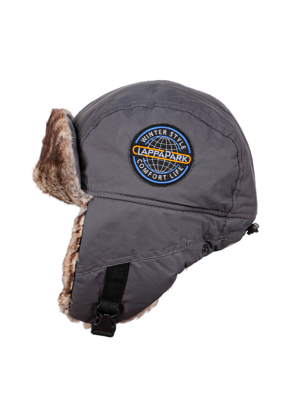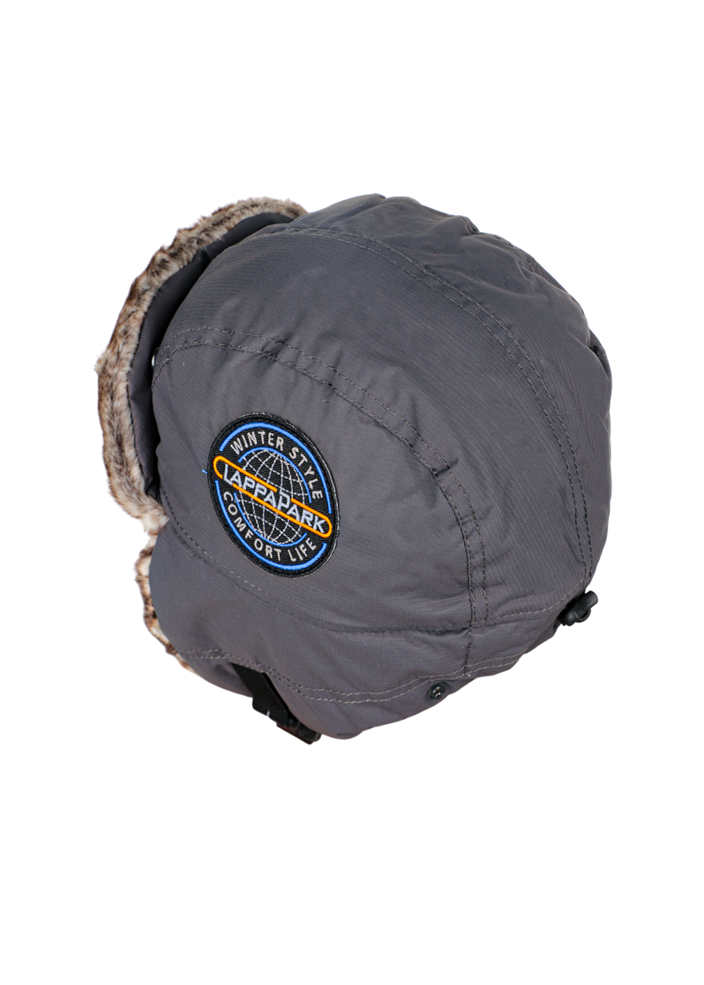 Ушанка Lahti серого цвета с декоративным шевроном выполнена из современной ткани крек-лайт с влагонепроницаемыми свойствами. Модель утеплена синтепоном и подкладкой из поларфлиса для максимального комфорта в холодную погоду. Уши и козырёк декорированы натуральным мехом белки, а конструкция дополнена регулируемым ремешком на подбородке и кнопками для фиксации ушей в поднятом положении.