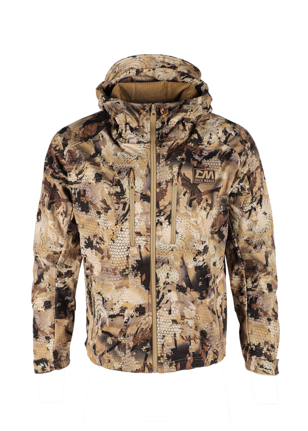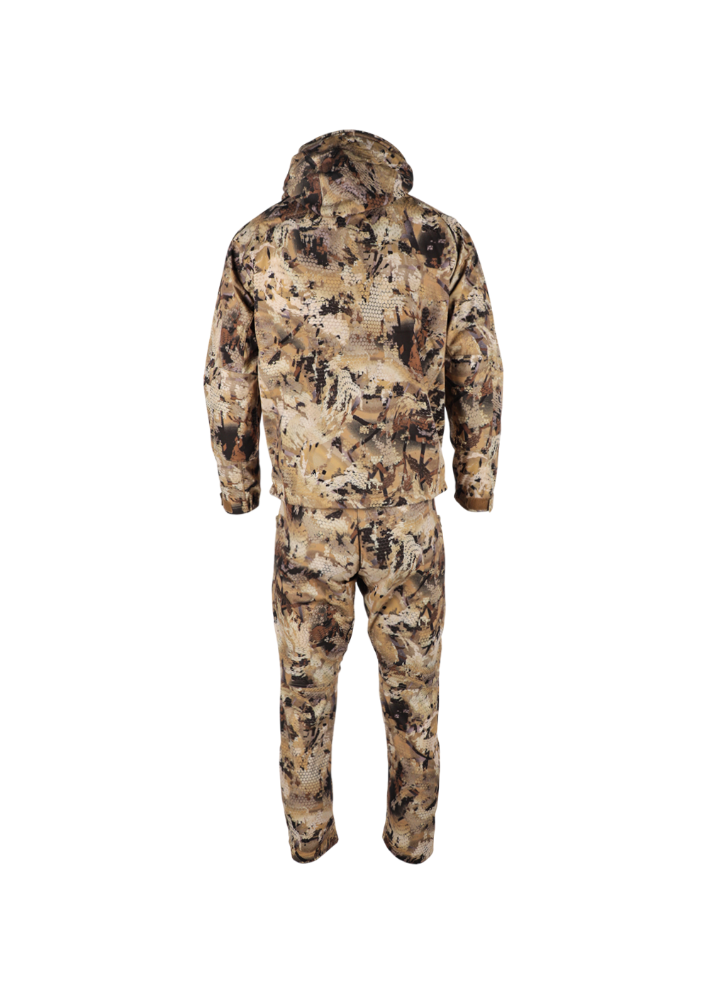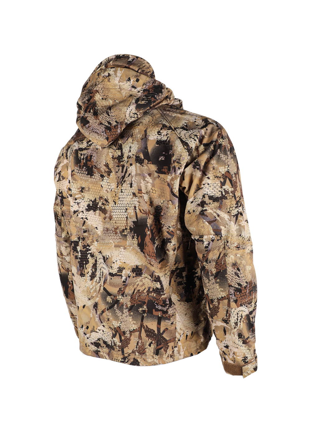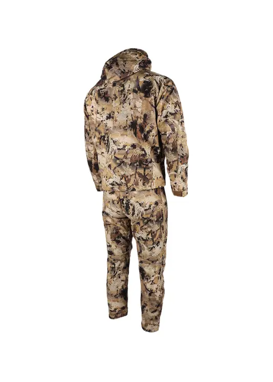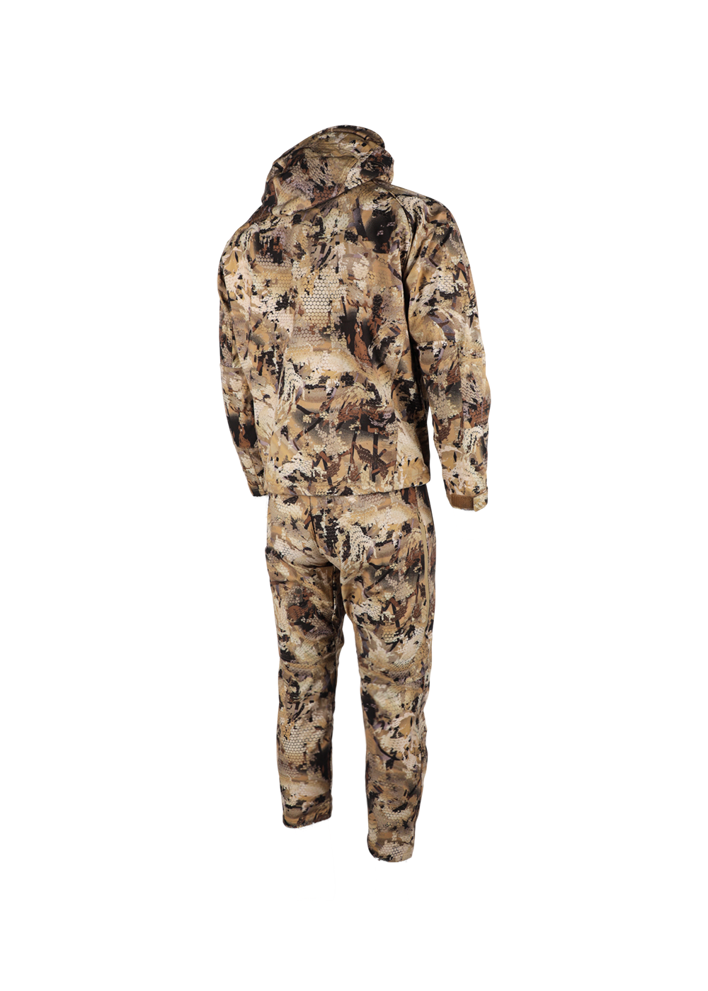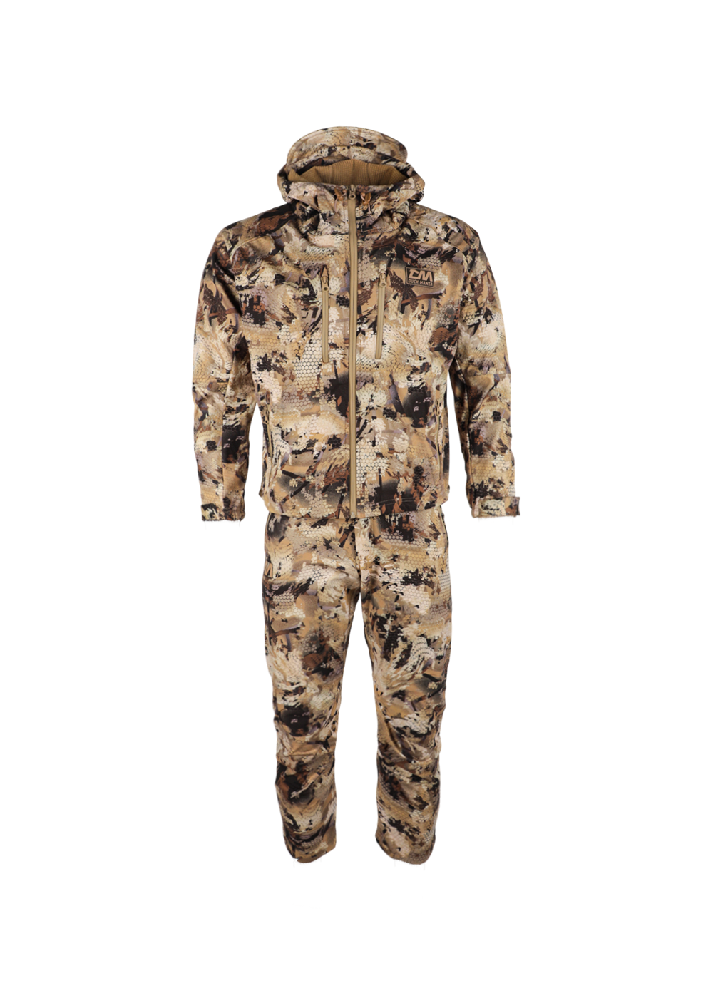 Костюм Duck Mania TIGER PRO C1005-COMB — профессиональная охотничья экипировка в камуфляжном исполнении, изготовленная из трёхслойной мембраны 3L плотностью 10000/10000 с усиленным внешним слоем HardTex и DWR-пропиткой. Комплект включает куртку с рукавами реглан, анатомическим капюшоном и четырьмя влагостойкими карманами, а также полукомбинезон с лямками и защитой поясницы. Внутренний флисовый слой waffle fleece эффективно отводит влагу при высокой активности и сохраняет тепло при низкой. Костюм обеспечивает защиту от ветра и лёгких осадков, температурный режим при активном использовании от -10°C до +10°C, при пассивном — от 0°C до +17°C. Влагостойкие молнии и специальные швы гарантируют надёжную защиту от влаги и долговечность.