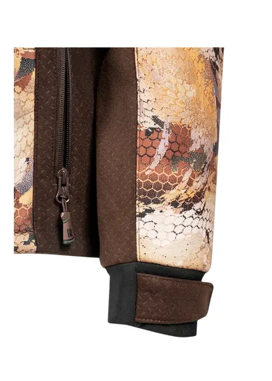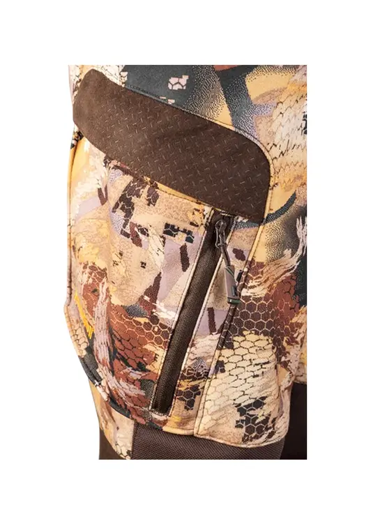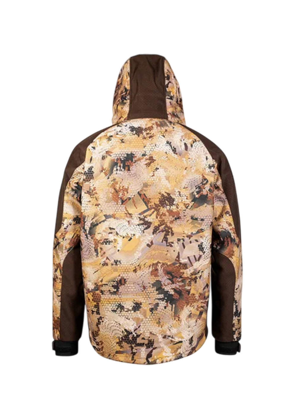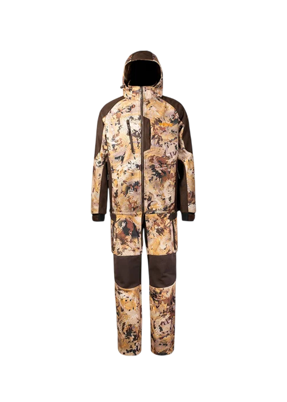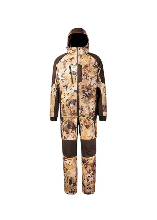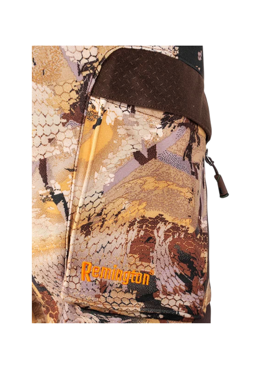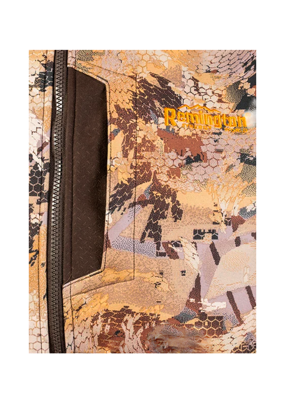 Демисезонный костюм Remington Camp Elite в камуфляже Yellow Waterfowl Honeycombs предназначен для охоты и активного отдыха при температуре от +5 до +15°C. Изготовлен из 100% полиэстера с мембраной Climatic Pro, обеспечивающей водонепроницаемость 10000 мм и паропроницаемость 8000 г/м²/24 ч. Куртка оснащена регулируемым капюшоном, кулисой по низу для защиты от непогоды, внутренней ветрозащитной планкой и удобными карманами на молнии. Брюки имеют анатомический крой с съёмными твёрдыми вставками в области колен и семь глубоких карманов. Костюм разработан с учётом потребностей охотников и обеспечивает эффективную маскировку в природных условиях.
