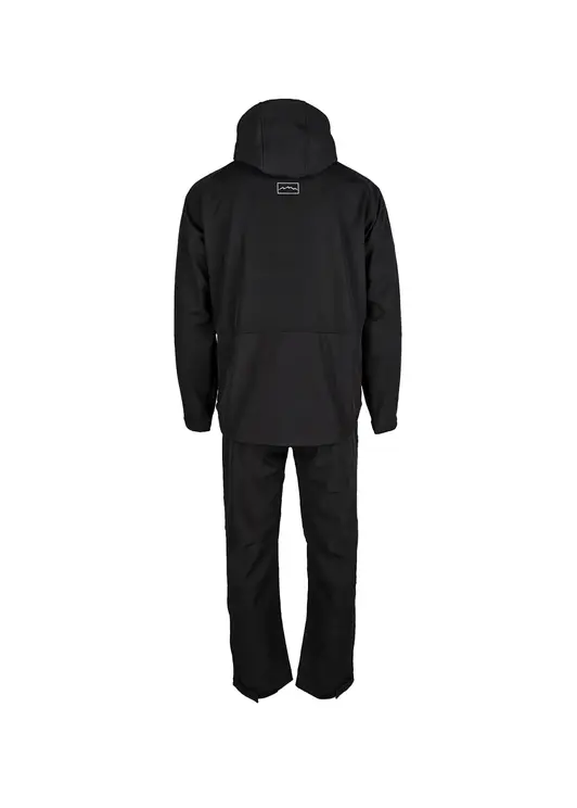 Дизайн модели отличается свободным, но слегка приталенным кроем, который не только обеспечивает свободу движений, но и придает образу современный спортивный стиль. Черный цвет костюма делает его универсальным решением, подходящим как для активного отдыха на природе (охота, рыбалка, туризм), так и для городских прогулок.