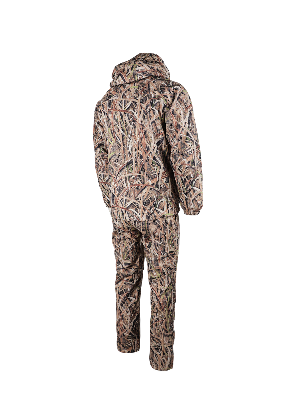 Костюм «RIDGE MAX» в цвете Камыш от TRITONGEAR — современная модель из инновационного материала SoftShell Windstop для охоты, рыбалки и активного отдыха в демисезонный период. Многослойная конструкция включает прочный внешний слой, мембранную прослойку и мягкий флис внутри, что обеспечивает защиту от ветра и осадков при сохранении воздухопроницаемости. Куртка оснащена четырьмя карманами с влагозащитными молниями и внутренним сетчатым карманом, имеет регулируемый капюшон. Брюки с эластичной резинкой на поясе дополнены двумя карманами на молнии.