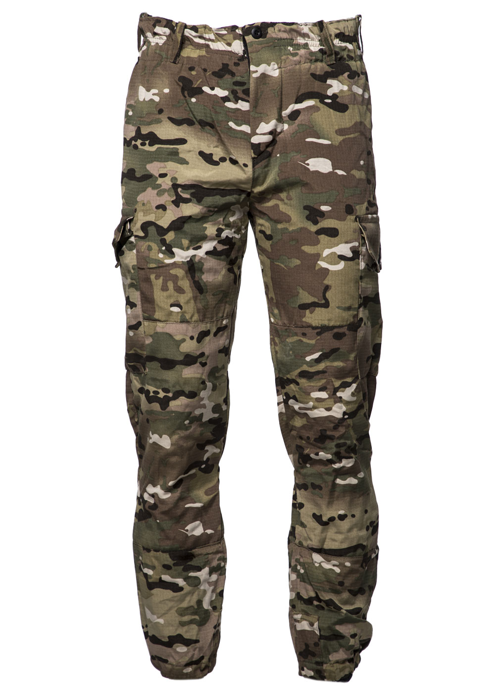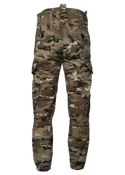 • Два кармана прорезных сбоку, два накладных объёмных с боку в области колена с клапаном на пуговице.