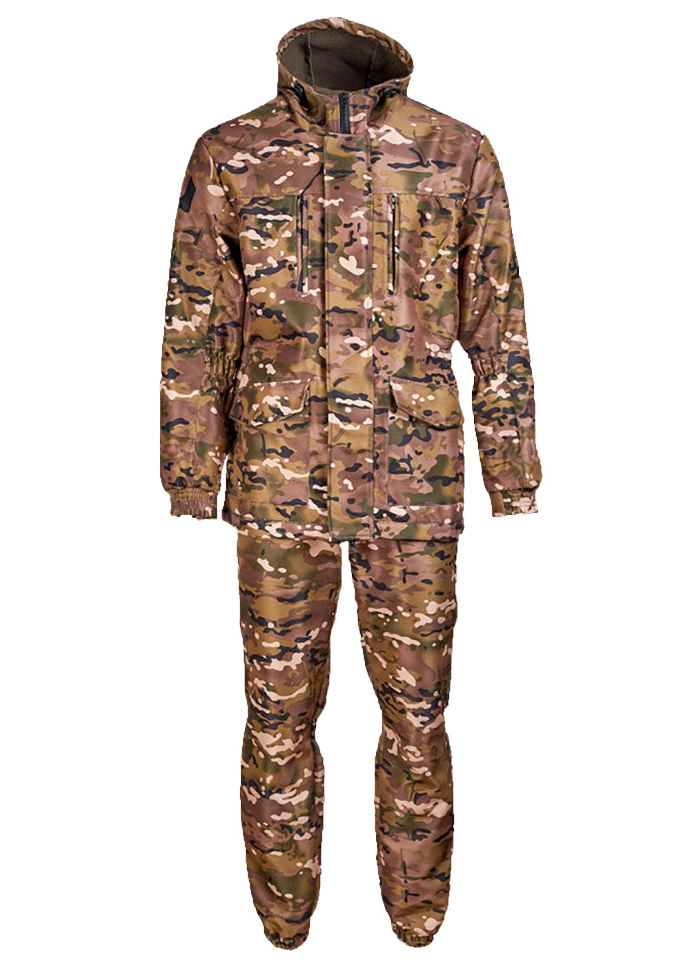 Костюм также оснащен 6 функциональными карманами для хранения необходимых принадлежностей, а также капюшоном, регулируемым по объему, для защиты от ветра и дождя. Широкий пояс брюк с шлевками обеспечивает надежную фиксацию костюма на теле, а флисовая подкладка весом 180гр. гарантирует тепло и комфорт в температурном режиме от 0 до +5°C.