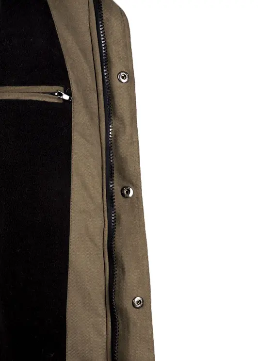 Куртка с притачным капюшоном. Пять карманов. Пояс на резинке.