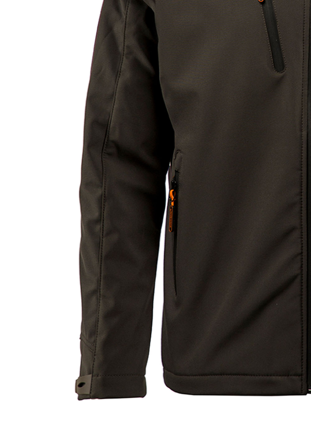 Удлиненная куртка на молнии по всей длине, с ветрозащитной планкой на кнопках. Капюшон с козырьком, регулируется по объему. Низ рукавов регулируется по объему фиксаторов на кнопке. На куртке 4 кармана на молнии.