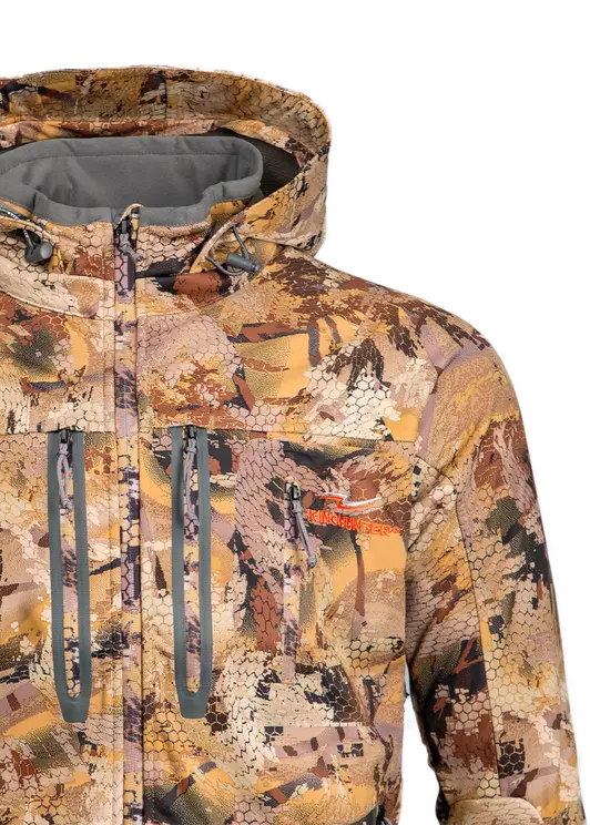 На куртке предусмотрены два боковых и два нагрудных кармана на молнии, а также дополнительный нагрудный карман для размещения дальномера, навигатора и прочих принадлежностей.