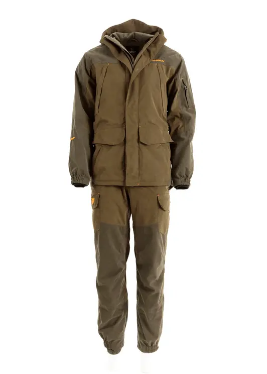 Костюм MAGNUM GEAR PREMIER в цвете хаки — это утеплённая мембранная экипировка премиум-класса, разработанная для эксплуатации при экстремально низких температурах до -20°C. Модель представляет собой практичный комплект, состоящий из куртки-горки и полукомбинезона, который обеспечивает максимальную защиту от холода, ветра и влаги при сохранении комфортного микроклимата внутри.