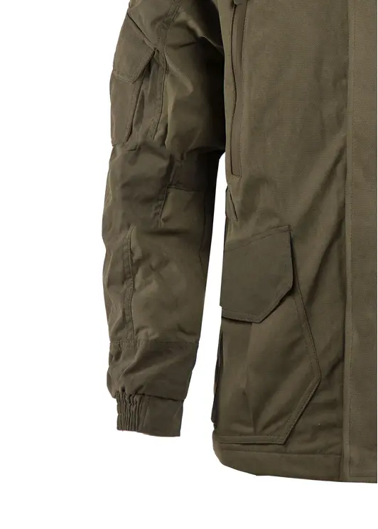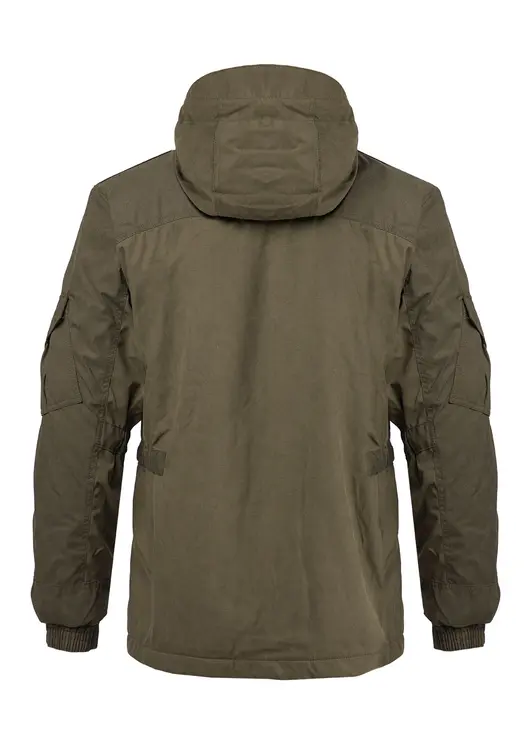 Костюм демисезонный мужской Хантер изготовлен из мембранной морозостойкой ткани Исландия 10000/10000, расцветки хаки. Поверхность ткани мягкая на ощупь, не шуршит. Костюм выполнен в стиле милитари и состоит из куртки и брюк со съемной спинкой и подтяжками. Подкладка в костюме на флисе. Костюм мембранный для охоты, влагозащитный, ветрозащитный, эксплуатация до -8 гр. Ц., может применяться также, как тактическая одежда, для охранных структур.