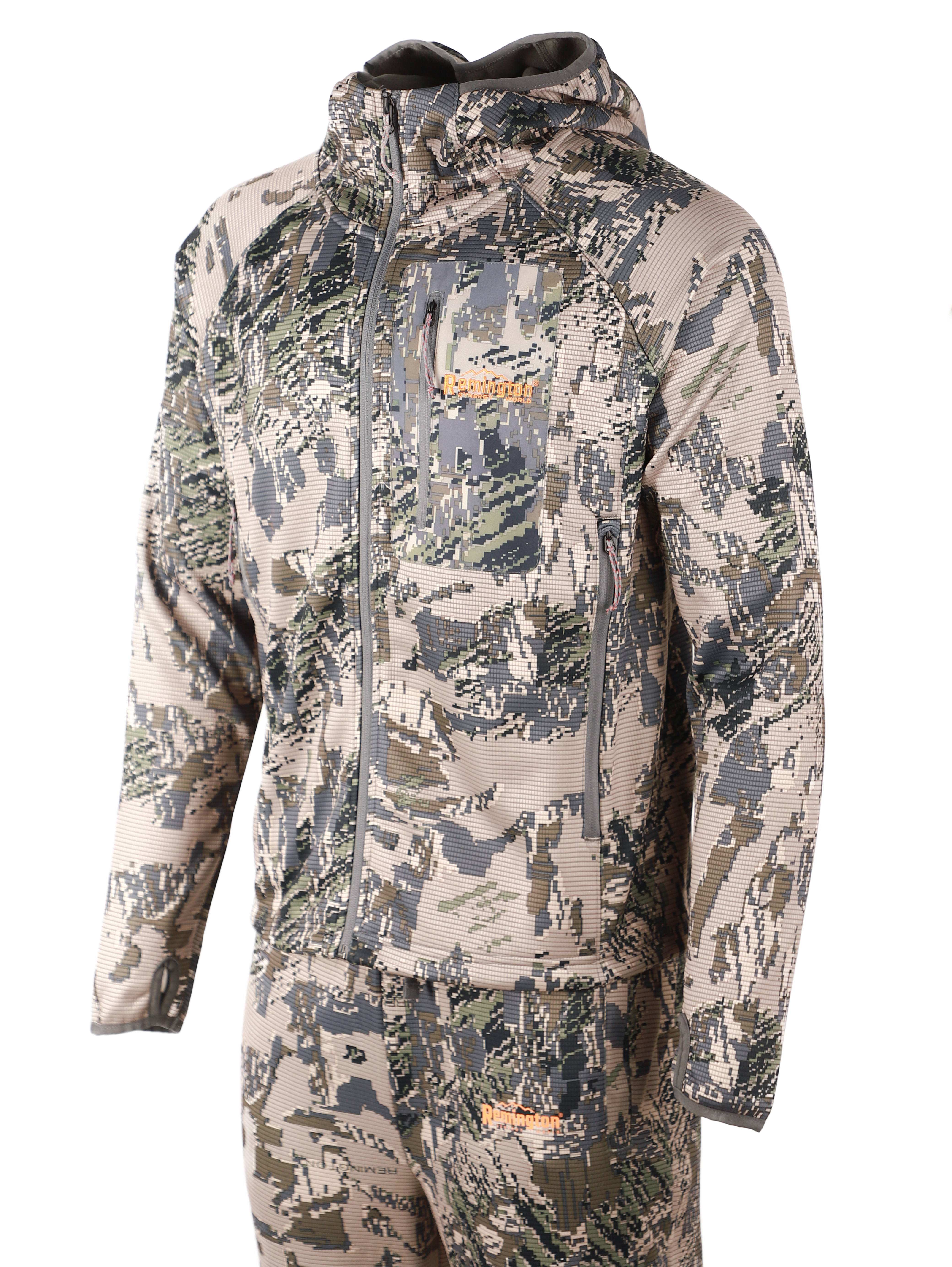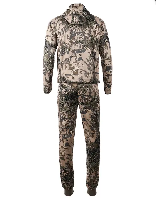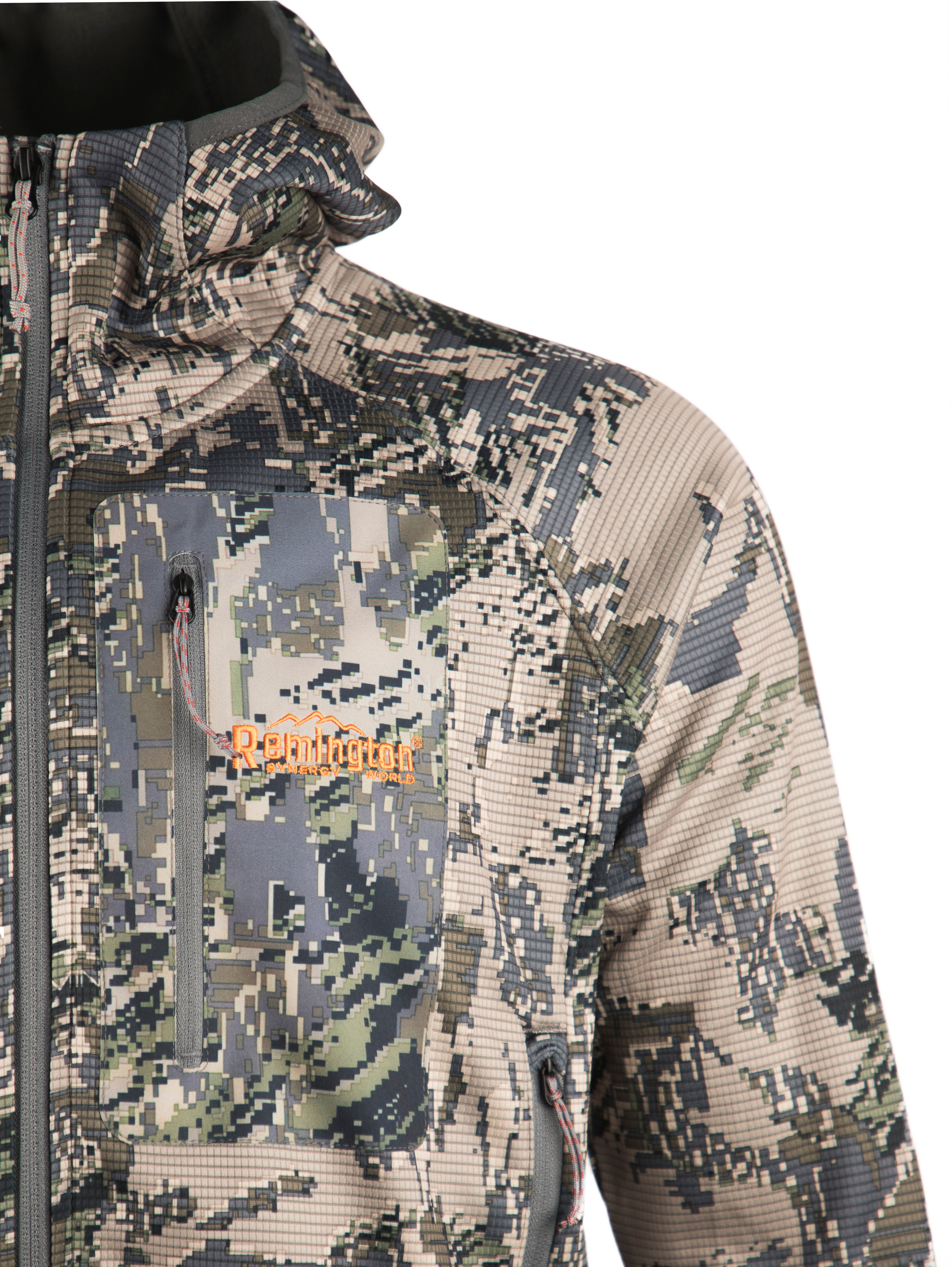 Костюм Remington Oreo  изготовлен из бесшумной ткани. Прекрасно подойдет для охоты или отдыха на природе. Наличие капюшона на куртке позволит обеспечить защиту от ветра и дождя. Внутренняя ветрозащитная планка на молнии станет дополнительной защитой от ветра. Плотное прилегание рукава обеспечивается резинкой, на рукаве имеется отверстие под палец. По низу изделия идет регулировка по объему кулисой. Мягкая флисовая подкладка на спине и внутри капюшона обеспечит сохранение тепла. Глубокие карманы в боковых швах позволят комфортно разместить руки, в брюках костюма также имеются 2 кармана в боковых швах. Благодаря наличию в поясе брюк резинки, обеспечивается хорошая посадка на различных типах фигуры, для дополнительной регулировки по объему в пояс вставлен шнурок. Манжета по низу брюк обеспечит защиту от пыли и холодного воздуха.