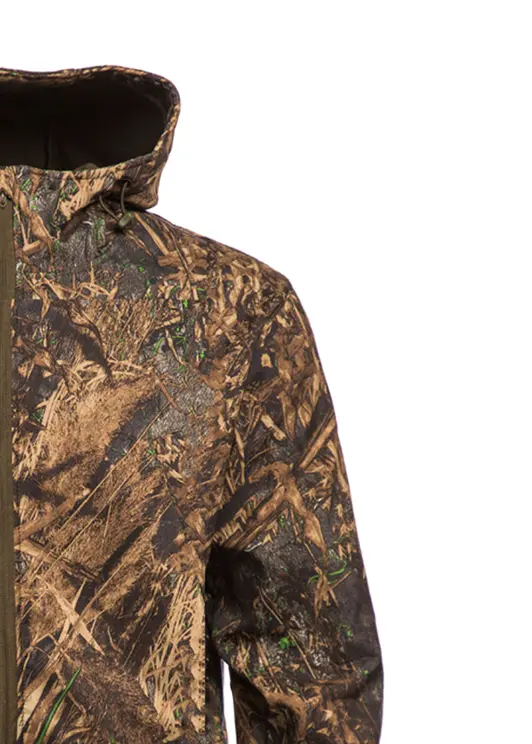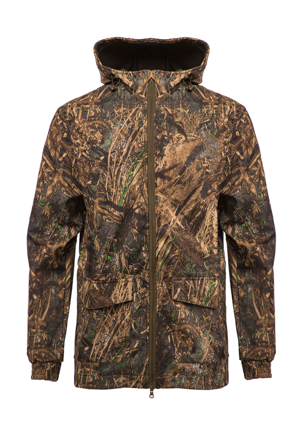 Капюшон регулируется по овалу лица. На куртке два верхних прорезных кармана с листочками без застежки, два нижних кармана с клапанами на кнопках.