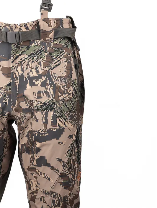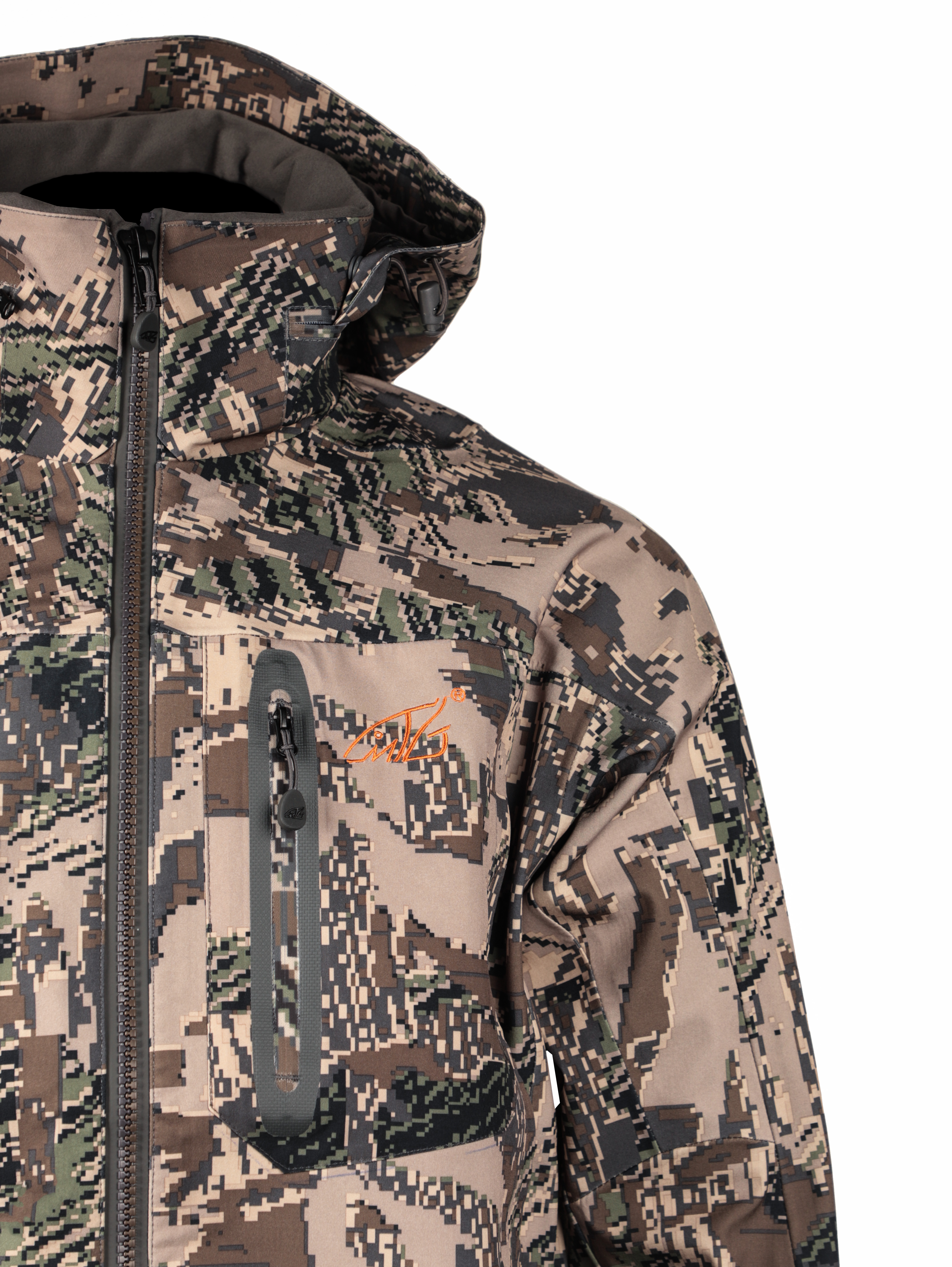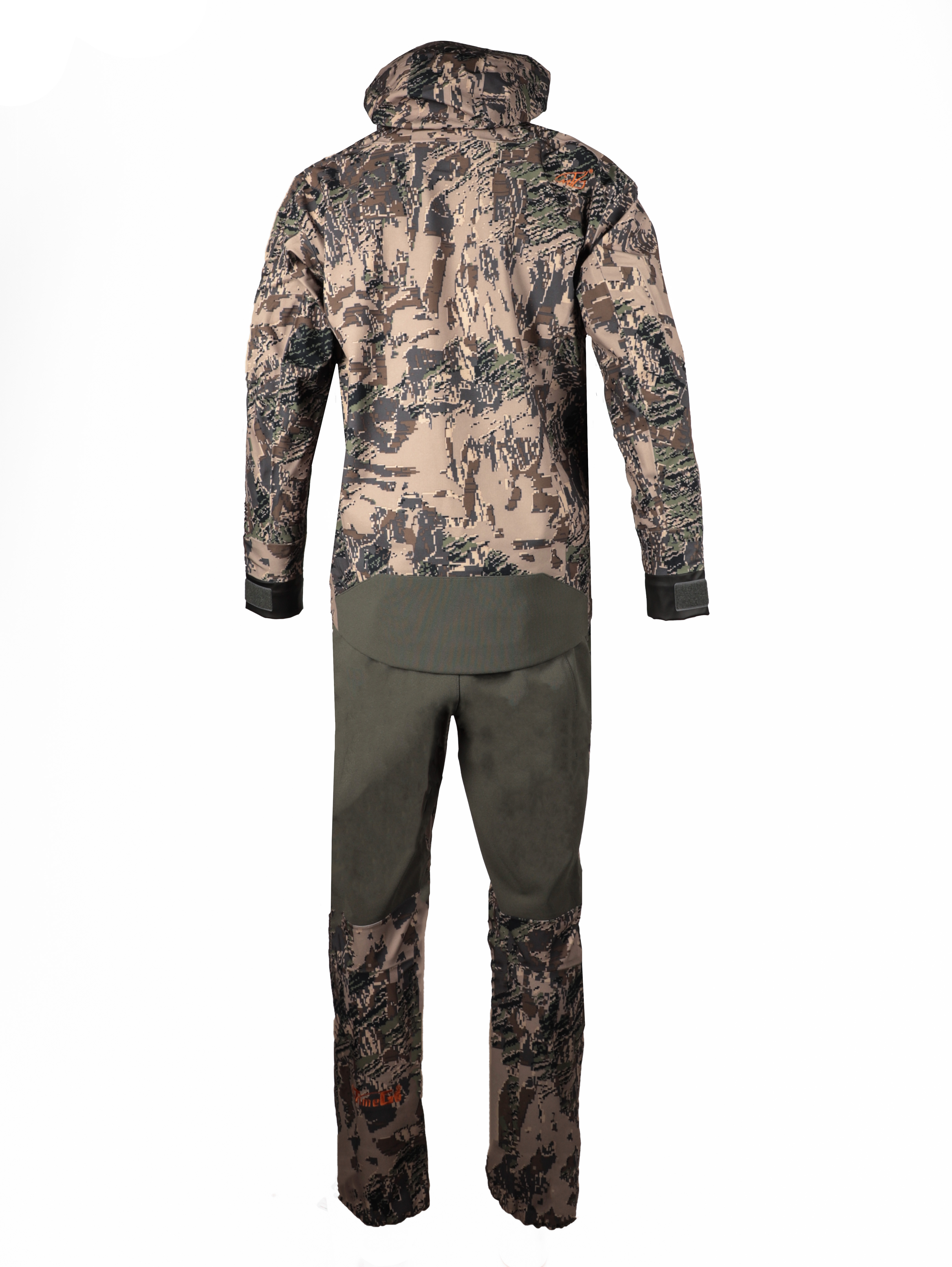 Эргономичный крой костюма не стесняет движений и обеспечивает максимальный комфорт при носке. Комплект состоит из куртки с капюшоном и брюк с подтяжками. Куртка оснащена регулируемым капюшоном, многочисленными функциональными карманами и вентиляционными молниями. Брюки имеют систему регулируемых элементов, включая манжеты и наколенники, а также оснащены практичными карманами и системой MOLLE для крепления дополнительного снаряжения.