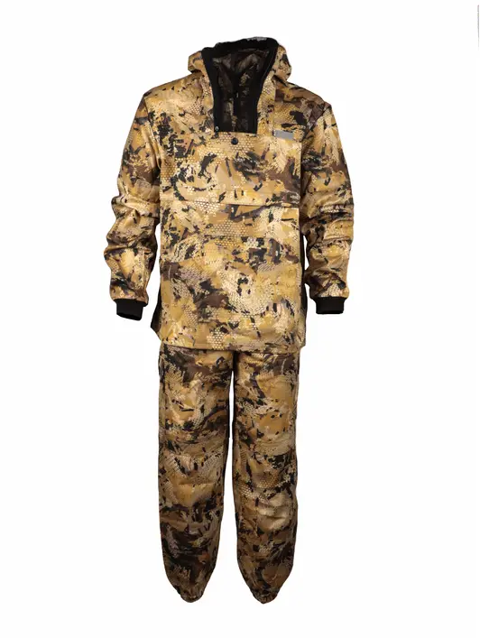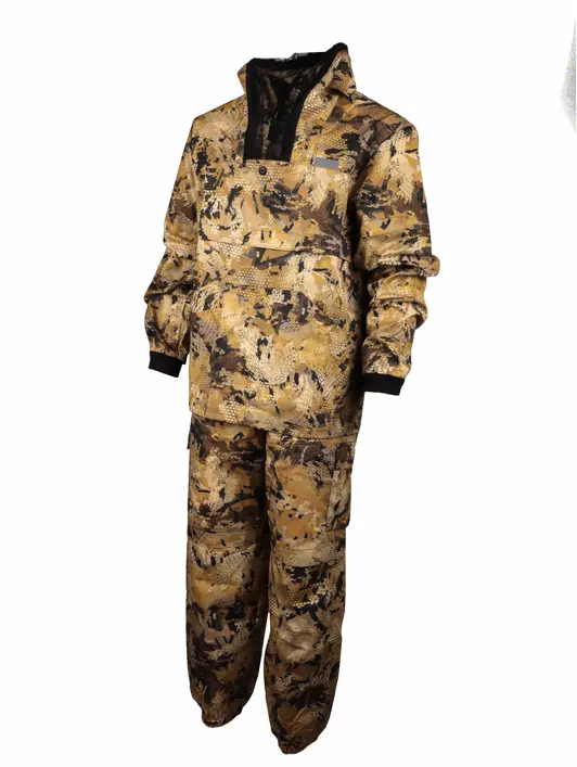 Костюм с противомоскитной сеткой на капюшоне убираемой в потайной нагрудный кармашек с клапаном. По овалу лица капюшон регулируется при помощи шнура. По объёму капюшон регулируется при помощи хлястика на липучке. Два больших нижних накладных кармана, на рукавах трикотажные манжеты, по низу куртки утяжка с фиксатором.