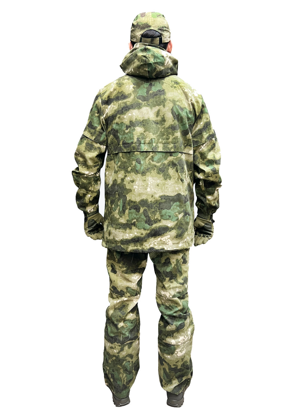 Брюки с завышенной посадкой с утяжкой пояса и шлевками для ремня, брючина прямая с противоклещевыми ловушками, по низу внутренний защитный противоклещевой клапан и утяжки.