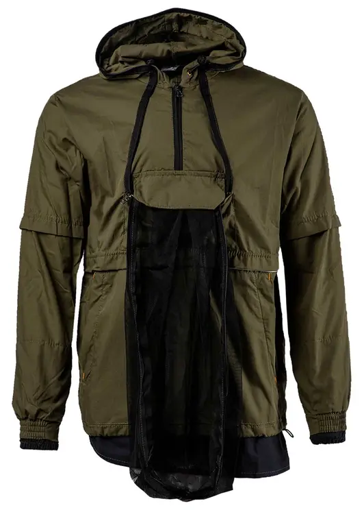 • Куртка свободного кроя с регулировкой объёма по низу и нагрудным карманом для сетки