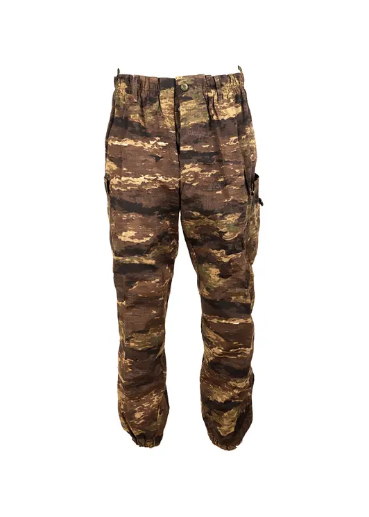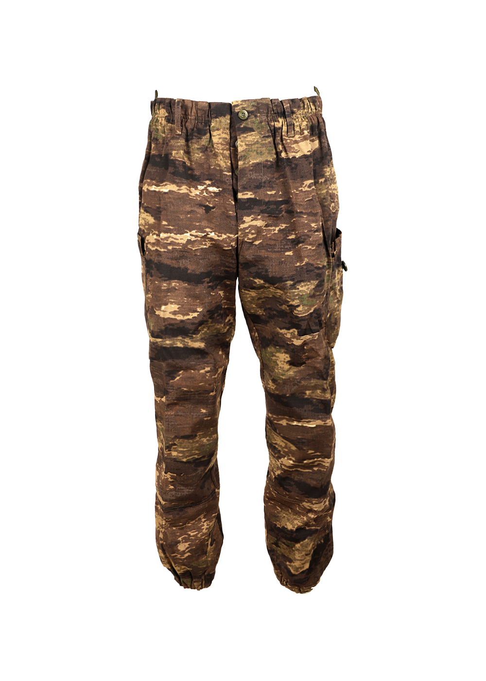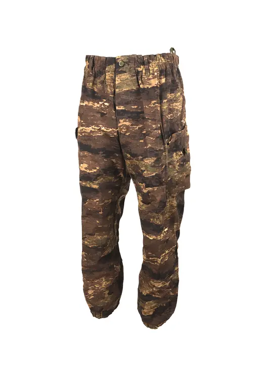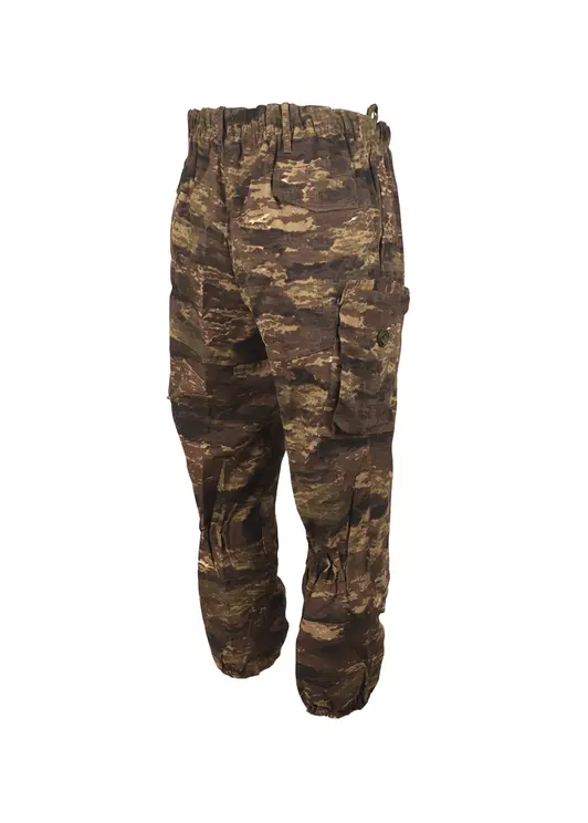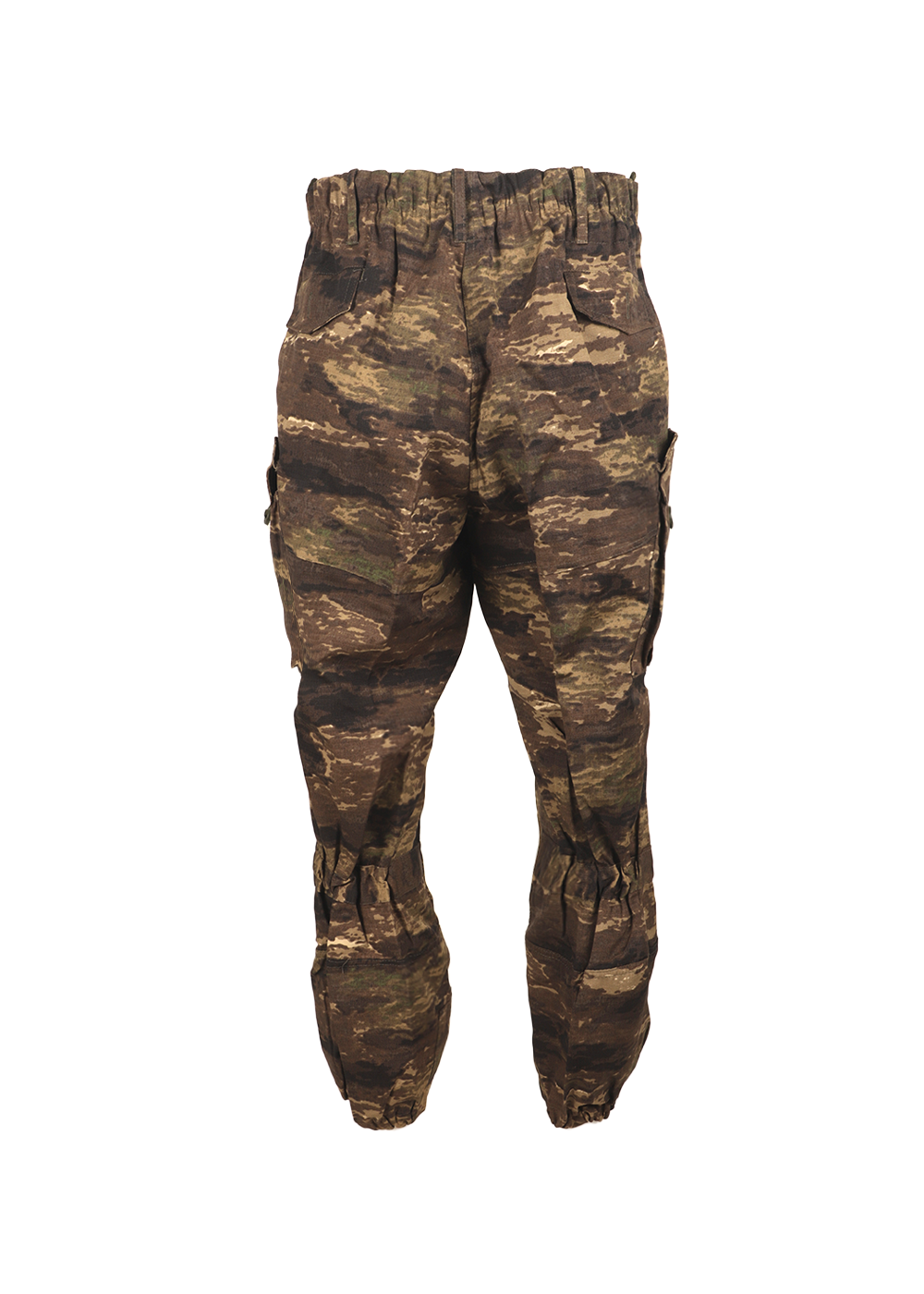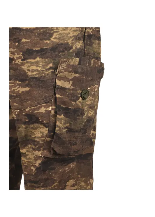 Главные особенности данной модели: крепление пуговиц усилено киперной лентой, капюшон с козырьком, манжеты рукавов и брюк на резинке, усиление на локтях, на коленях и на седалище, пояс на резинке со шлевками, пыльники с завязками, съёмные помочи на пуговицах. Костюм изготовлен из смесовой ткани с плетением рип стоп плотностью 220 г/м².