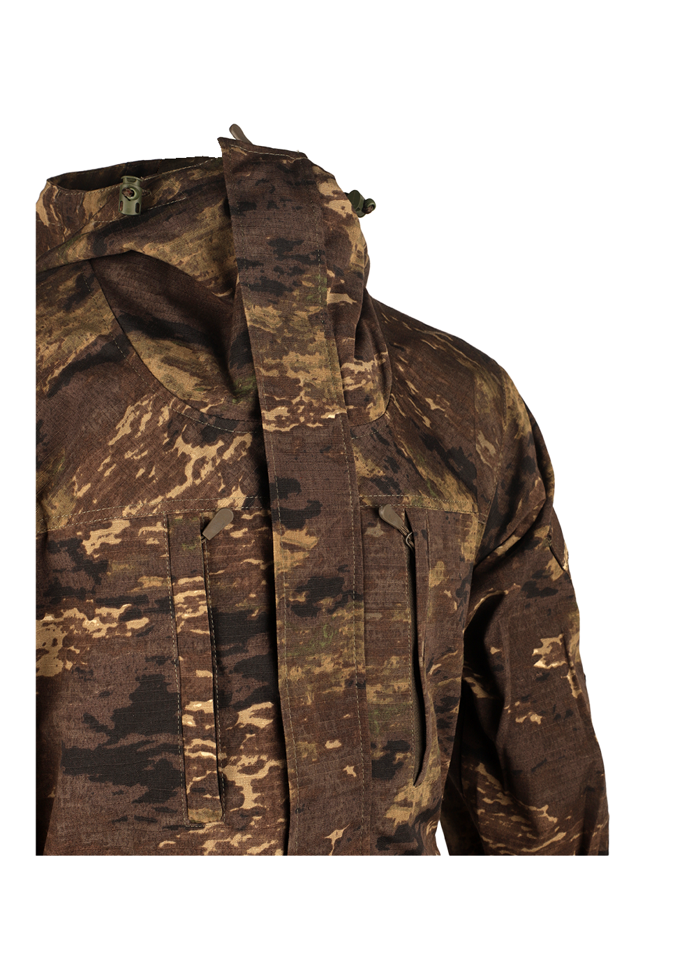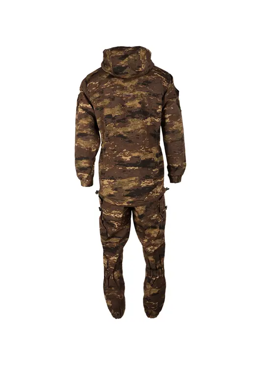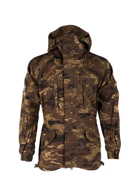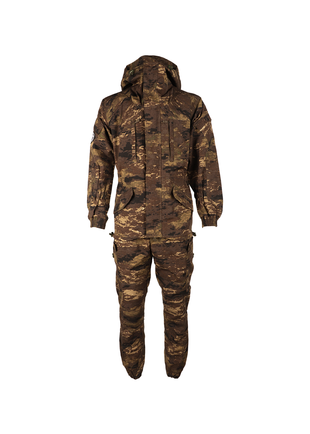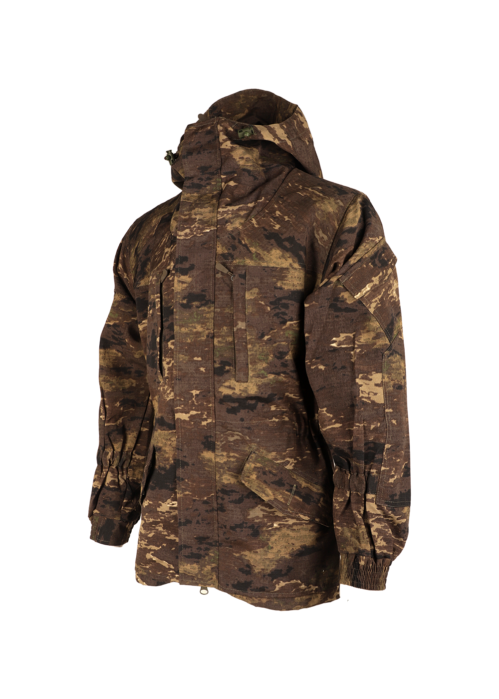 Костюм штурмовой демисезонный анатомического кроя Skadi Gear Горка 5М (смесовая рип стоп) имеет крепление пуговиц, усиленное киперной лентой, 11 карманов, капюшон с козырьком, манжеты рукавов и брюк на резинке, усиление на локтях, на коленях и на седалище, пояс на резинке со шлевками, пыльники с завязками, съёмные помочи на пуговицах.