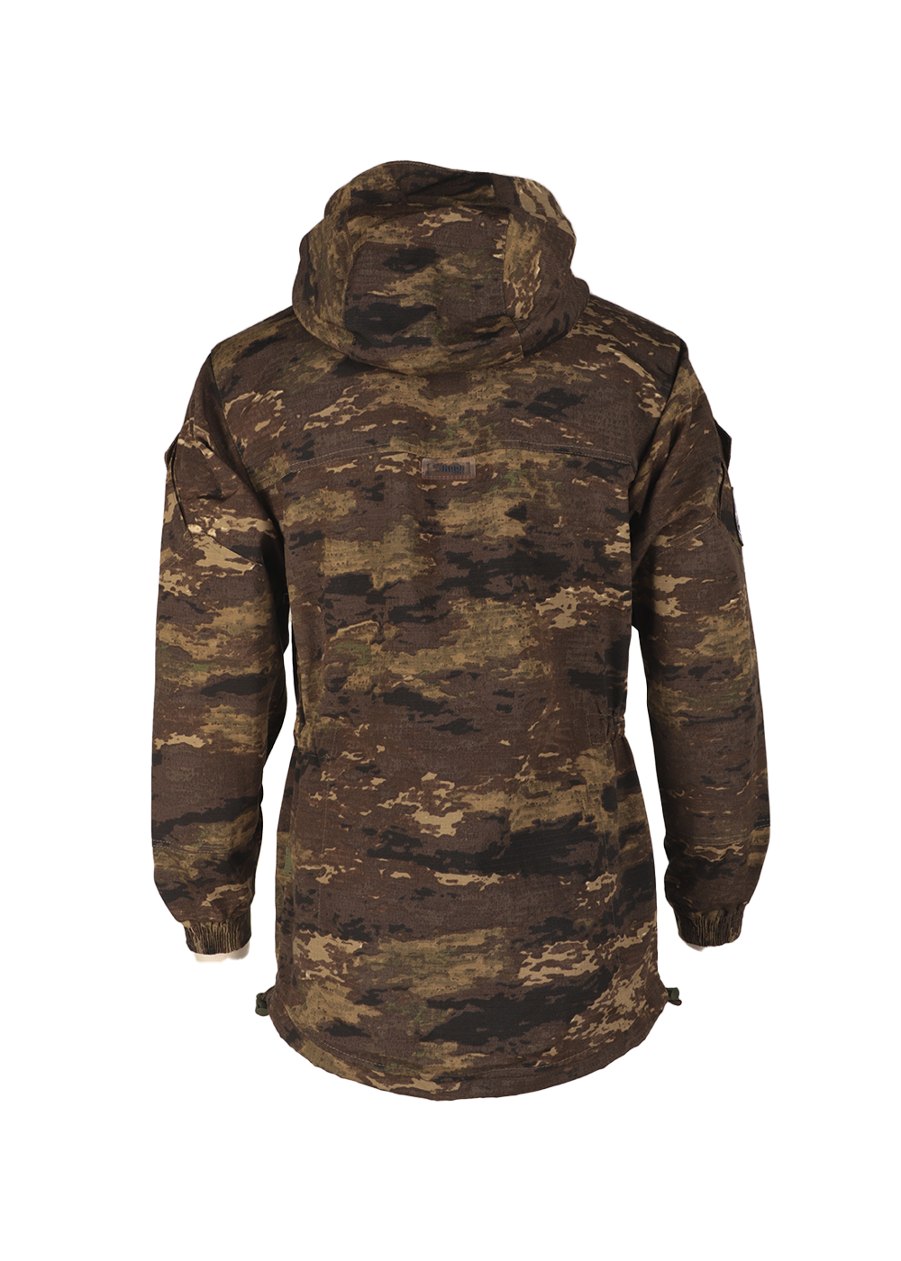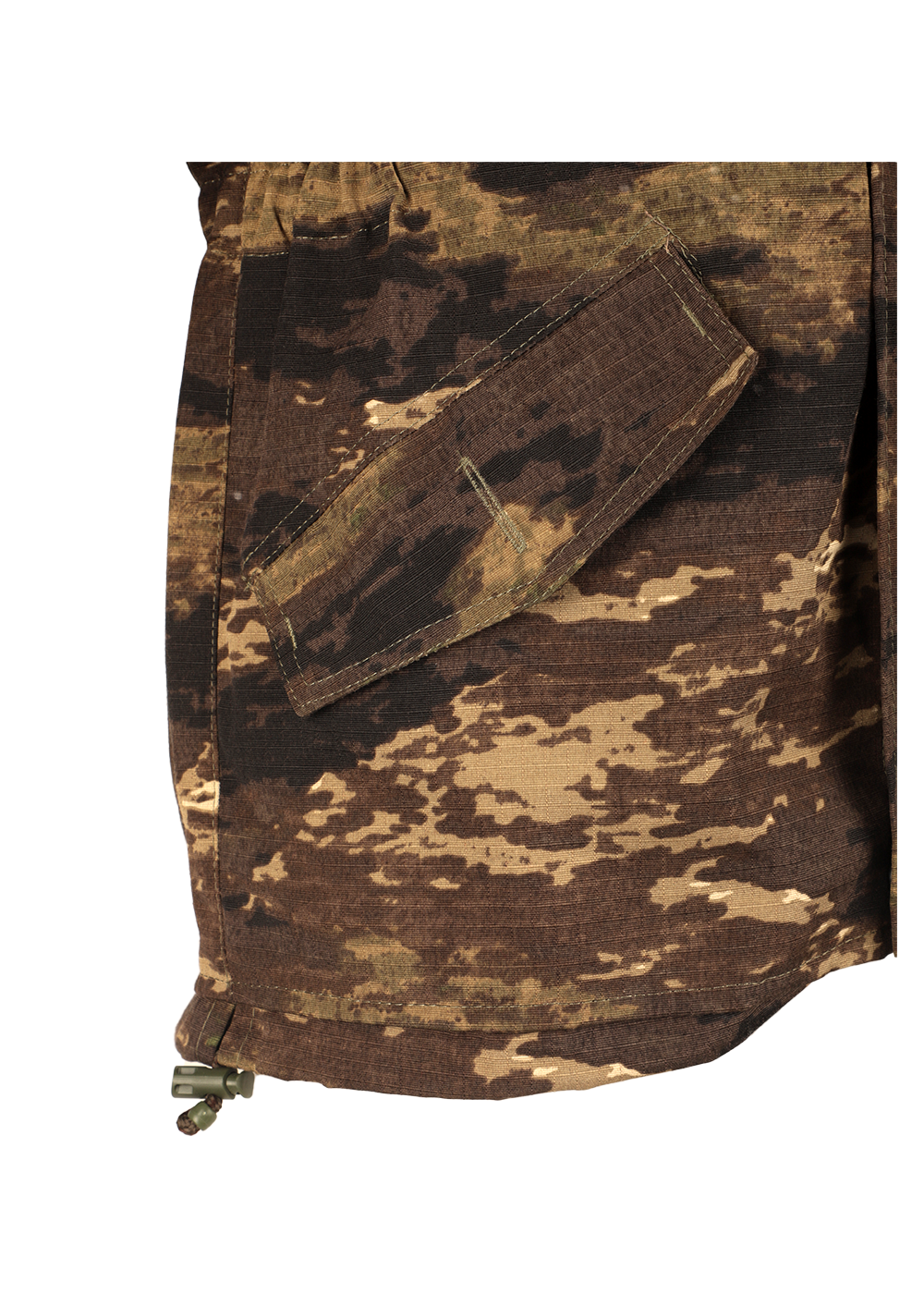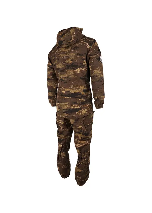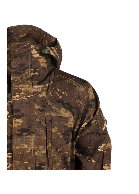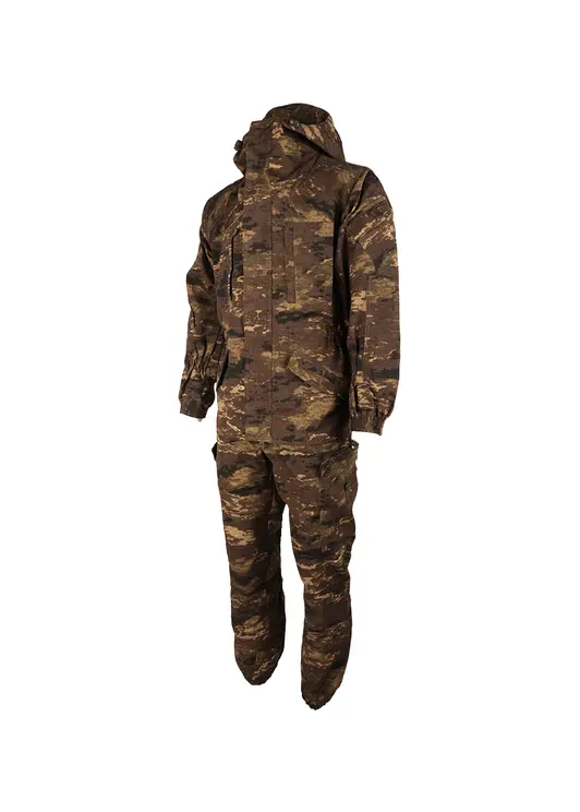 Костюм штурмовой демисезонный анатомического кроя Skadi Gear Горка 5М (смесовая рип стоп) имеет крепление пуговиц, усиленное киперной лентой, 11 карманов, капюшон с козырьком, манжеты рукавов и брюк на резинке, усиление на локтях, на коленях и на седалище, пояс на резинке со шлевками, пыльники с завязками, съёмные помочи на пуговицах.