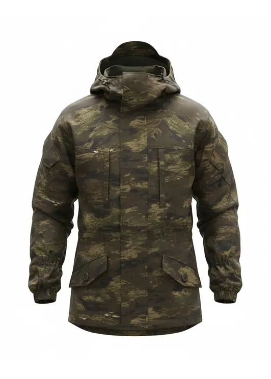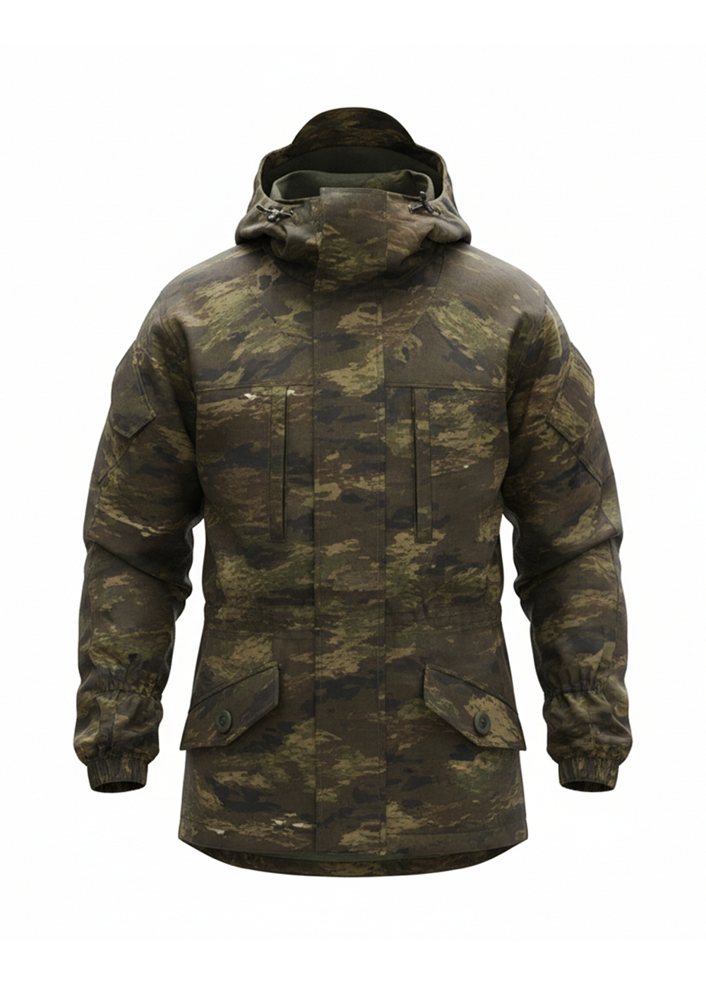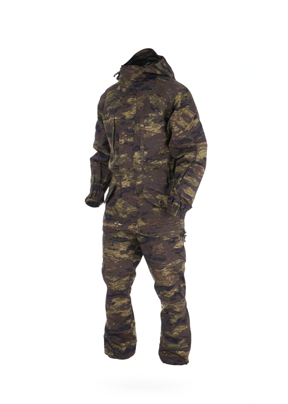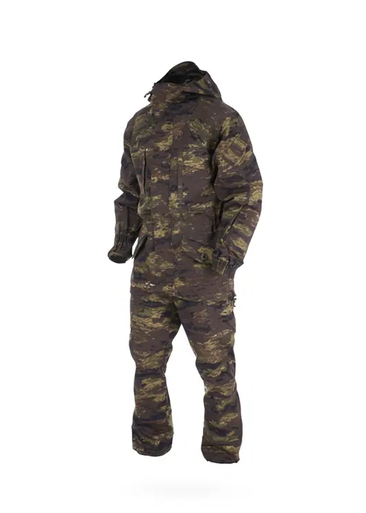 Костюм Горка 5М из смесовой ткани рипстоп в камуфляжной расцветке A-TACS iX (тигр) — модернизированная штурмовая модель для активного использования в летний период. Комплект включает куртку с двухзамковой молнией под ветрозащитной планкой, 12 функциональных карманов, капюшон с козырьком и брюки со съемными помочами. Материал плотностью 220 г/м² (65% полиэстер, 35% хлопок) обеспечивает прочность и износостойкость, а специальная конструкция с усиленными локтями, коленями и седалищем повышает долговечность изделия. Манжеты на резинке и регулируемый пояс обеспечивают комфортную посадку, а продуманная система вентиляции создает оптимальный микроклимат. Костюм подходит для охоты, рыбалки и туризма