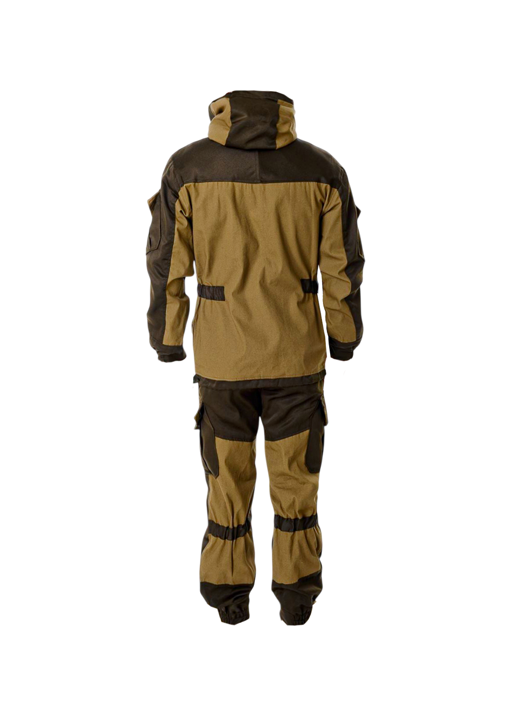 Костюм «Горка» состоит из куртки и брюк, изготовлен из брезента (100% хлопок). Цвет — хаки. Костюм предназначен для летнего времени года и подходит для охоты, рыбалки и активного отдыха на природе.