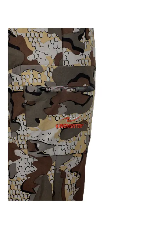 Костюм King Hunter SUMMER LIGHT (Modern Camo), идеальный выбор для охотников и рыбаков в жаркую погоду. Он изготовлен из быстросохнущего нейлонового материала, который обеспечивает отличную вентиляцию и сохраняет прохладу даже в самые знойные дни. Брюки и куртка имеют анатомический крой, что позволяет свободно двигаться и не сковывать движения. Костюм выводит наружу тепло и испарения тела, обеспечивая максимальный комфорт при длительных прогулках или охоте. Все карманы для улучшения вентиляции выполнены с сетчатой подкладкой. Модель предназначена для охоты в тёплое время года и имеет прочный, стойкий к истиранию материал.