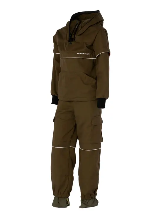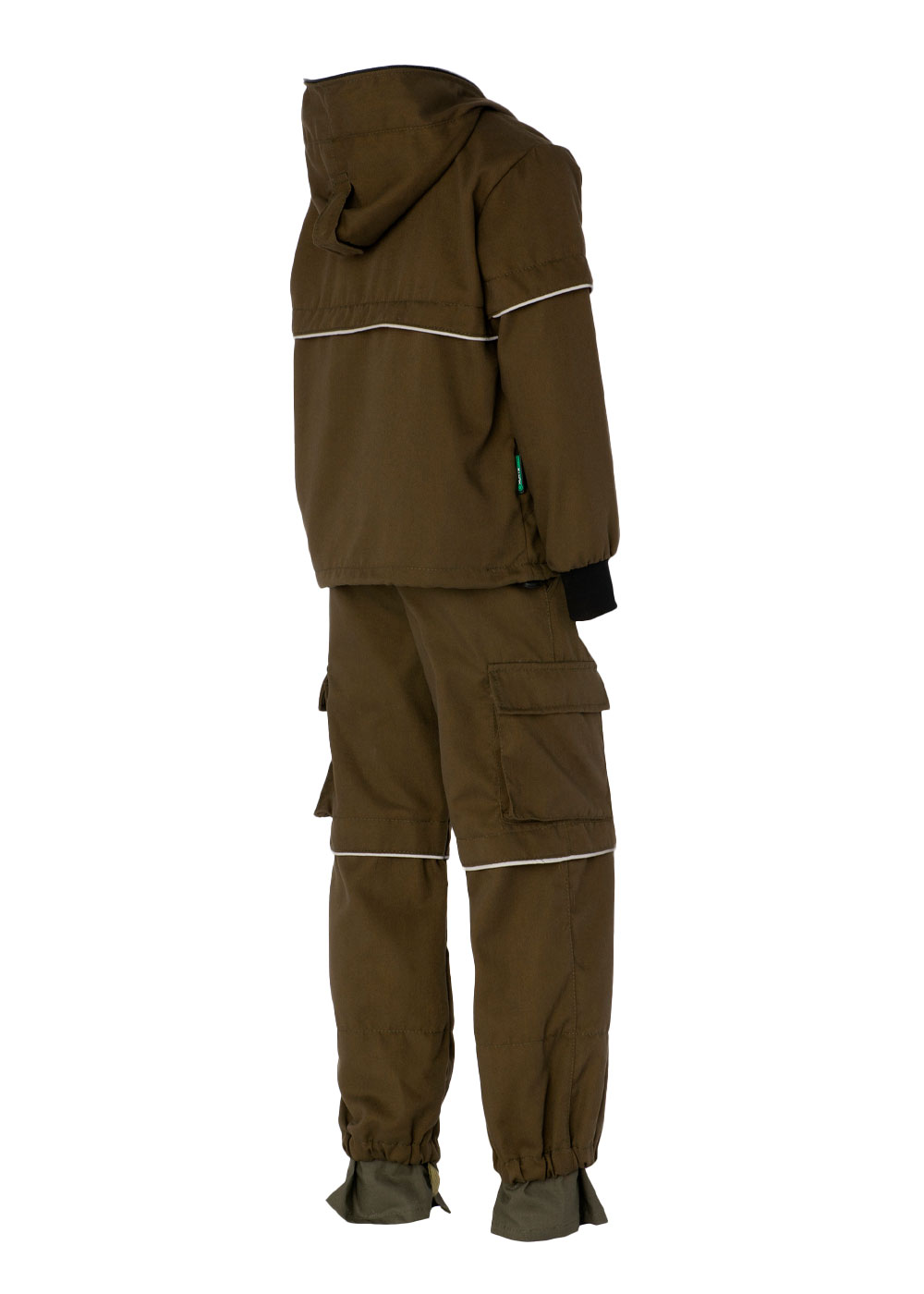 Костюм летний детский «Антигнус» выполнен из ткани «Твил-Пич» цвета хаки. В комплект входят куртка и брюки. Костюм обеспечивает полную защиту от гнуса и ловушек против клещей. Крой не стесняет движений ребёнка. Подходит как мальчикам, так и девочкам.