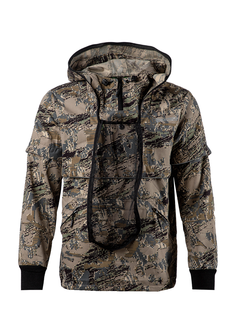 • Антимоскитная сетка в капюшоне и на молнии куртки позволяет защитить от укусов комаров и других насекомых