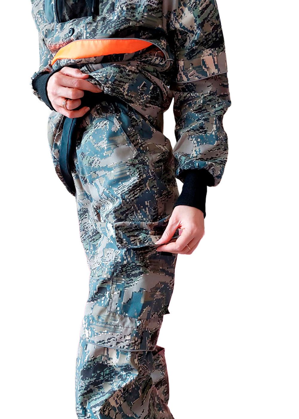 На брюках есть объёмные накладные карманы с клапанами на липучках. На штанинах выше колен также расположены ловушки для клещей. С целью дополнительной защиты от насекомых внизу штанин есть резинки, благодаря которым