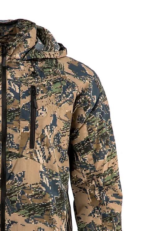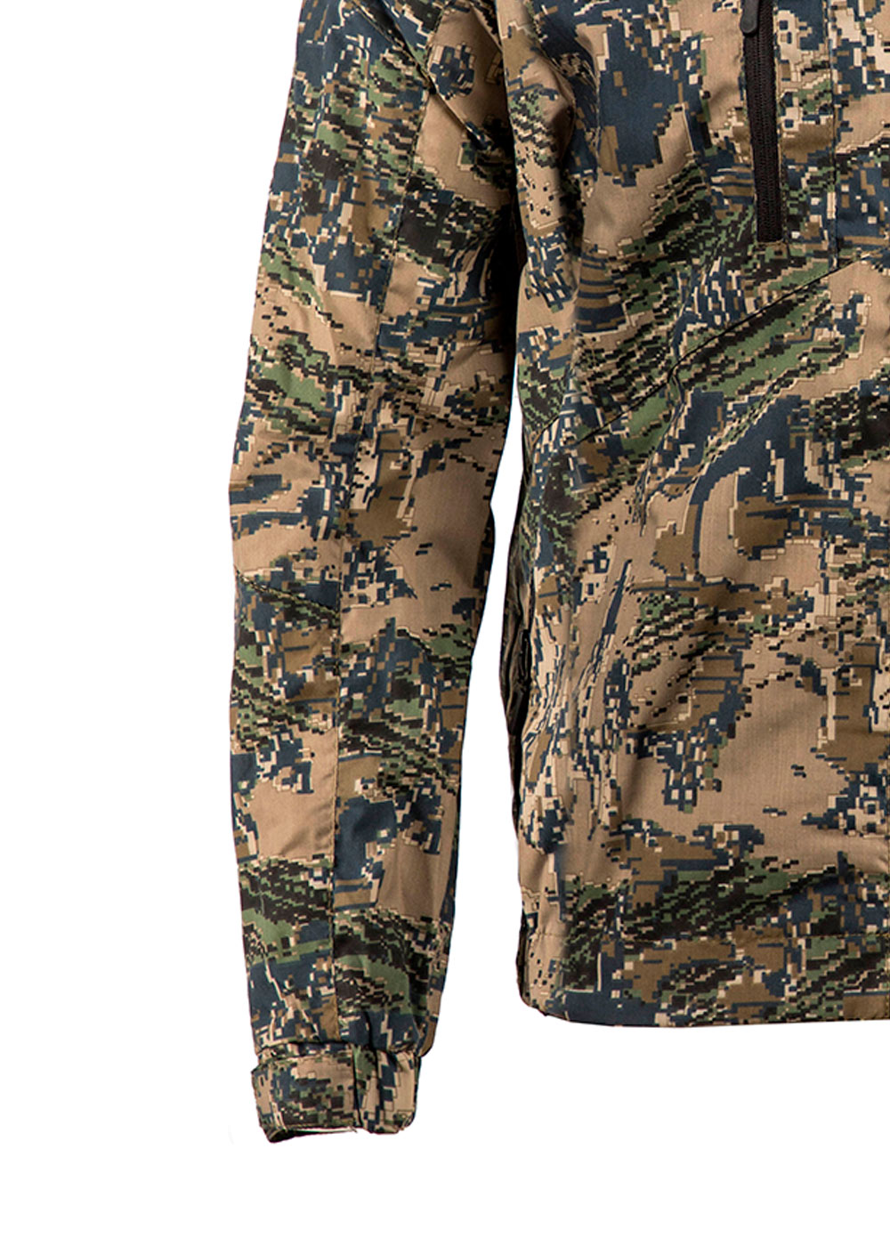 Костюм летний мужской SOLAR, принт 067, изготовлен из ткани Медея (80 % ПЭ, 20 % хлопок). Водоотталкивающая пропитка WR обеспечивает защиту от влаги. Температурный режим — до +30 °C. Костюм имеет анатомический крой и 6 функциональных карманов. Регулируемый капюшон.
