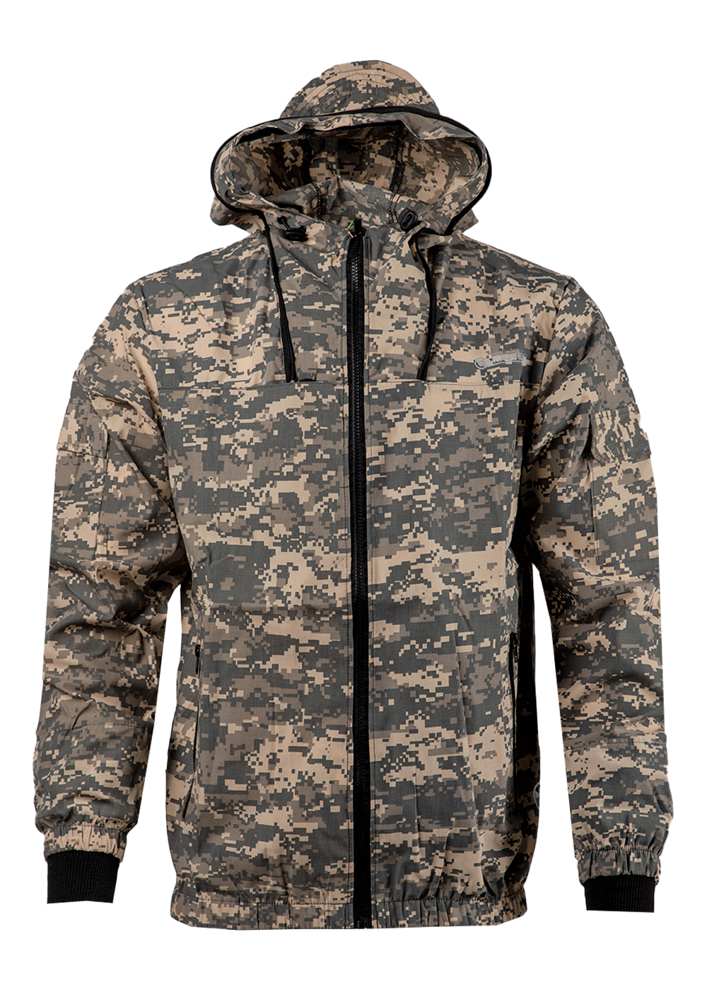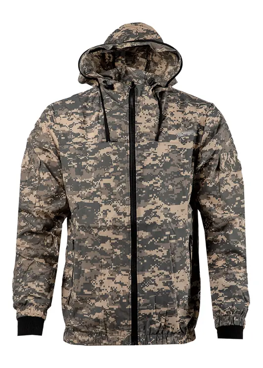 • Особенности: куртка на молнии с капюшоном, резинки на рукавах и внизу куртки, два накладных кармана с клапанами на груди, застёгивающихся на липучку