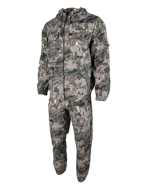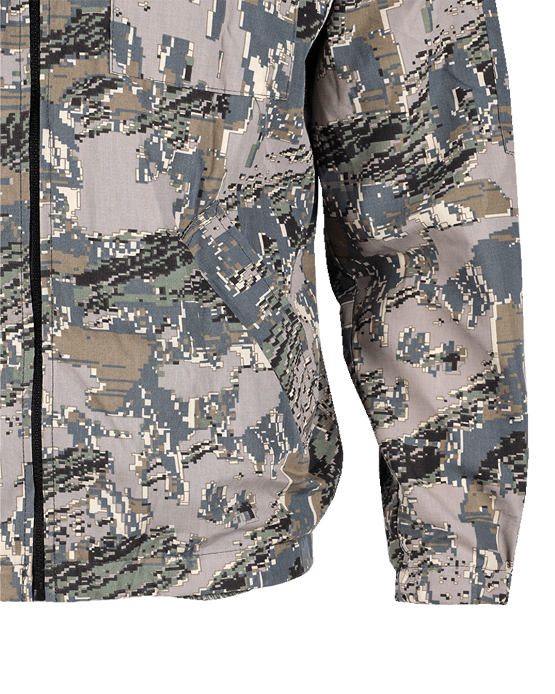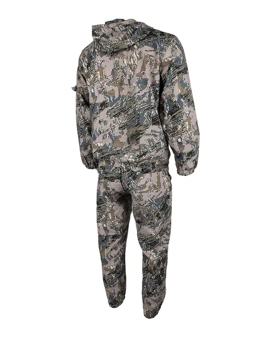 Куртка на молнии с капюшоном, утяжки на капюшоне, низ куртки и рукава на резинке, 2 накладных кармана с клапаном в области груди, 2 нижних боковых прорезных кармана, на левом рукаве накладной карман с клапаном. Брюки свободного кроя на резинке по поясу и низу брюк, 2 кармана. Изготовлен из смесовой ткани. Обладает водоотталкивающими свойствами, «дышит» и не шуршит. Состав ткани: полиэстер 65%, х/б 35%. Изготовленные по уникальной технологии, смесовые ткани соединяют в себе отличные эксплуатационные и физико-химические свойства натуральных и синтетических волокон. Такие ткани хорошо пропускают воздух, позволяя коже дышать, обеспечивают гигроскопичность и приятные тактильные ощущения. Смесовые ткани не теряют форму, не мнутся и не выгорают. Смесовые ткани это удобство и практичность, проверенные на практике. Ткани прошли надлежащие лабораторные испытания.