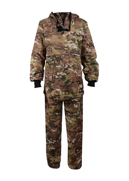 Костюм летний женский «Антигнус-Люкс» с ловушками и пыльниками — это стильная и функциональная одежда для защиты от насекомых. Он выполнен в камуфляжном цвете (мультикам) и изготовлен из хлопковой ткани (Cotton).