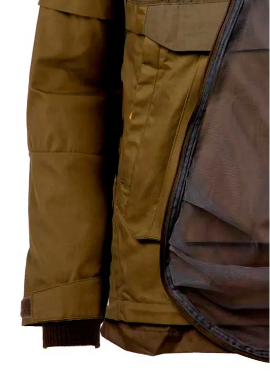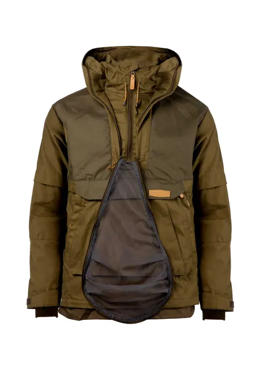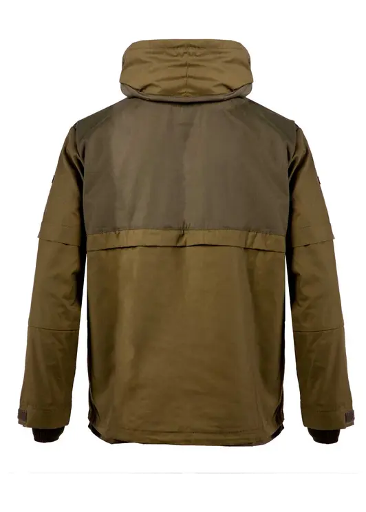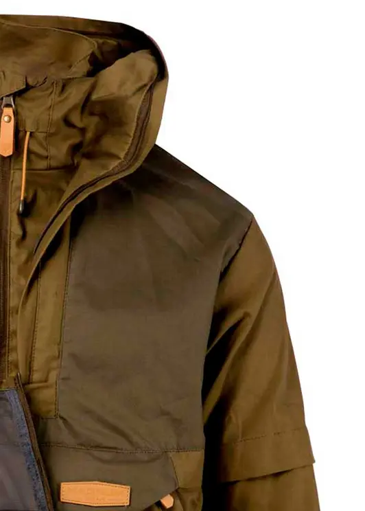 Костюм PROTECTOR выполнен в расцветке хаки/олива. Он предназначен для защиты от механических воздействий и вредных биологических факторов. Костюм состоит из куртки и брюк, которые изготовлены из смесовой ткани рип-стоп плотностью 210 г/м². Куртка оснащена капюшоном, который регулируется по объёму, а также карманами на молнии и пуговицах. Брюки имеют регулируемые по длине лямки и пояс, а также шлёвки для ремня.