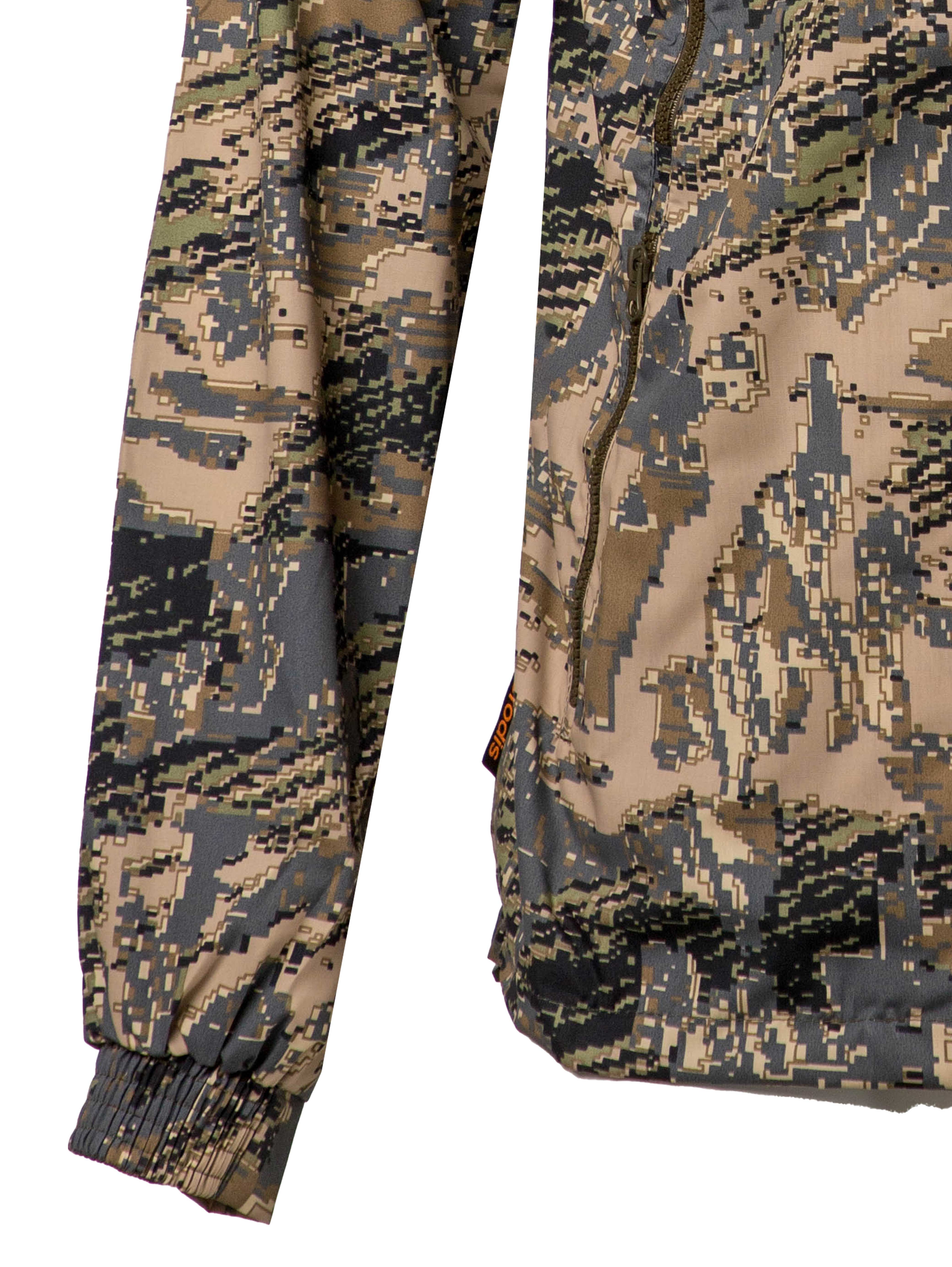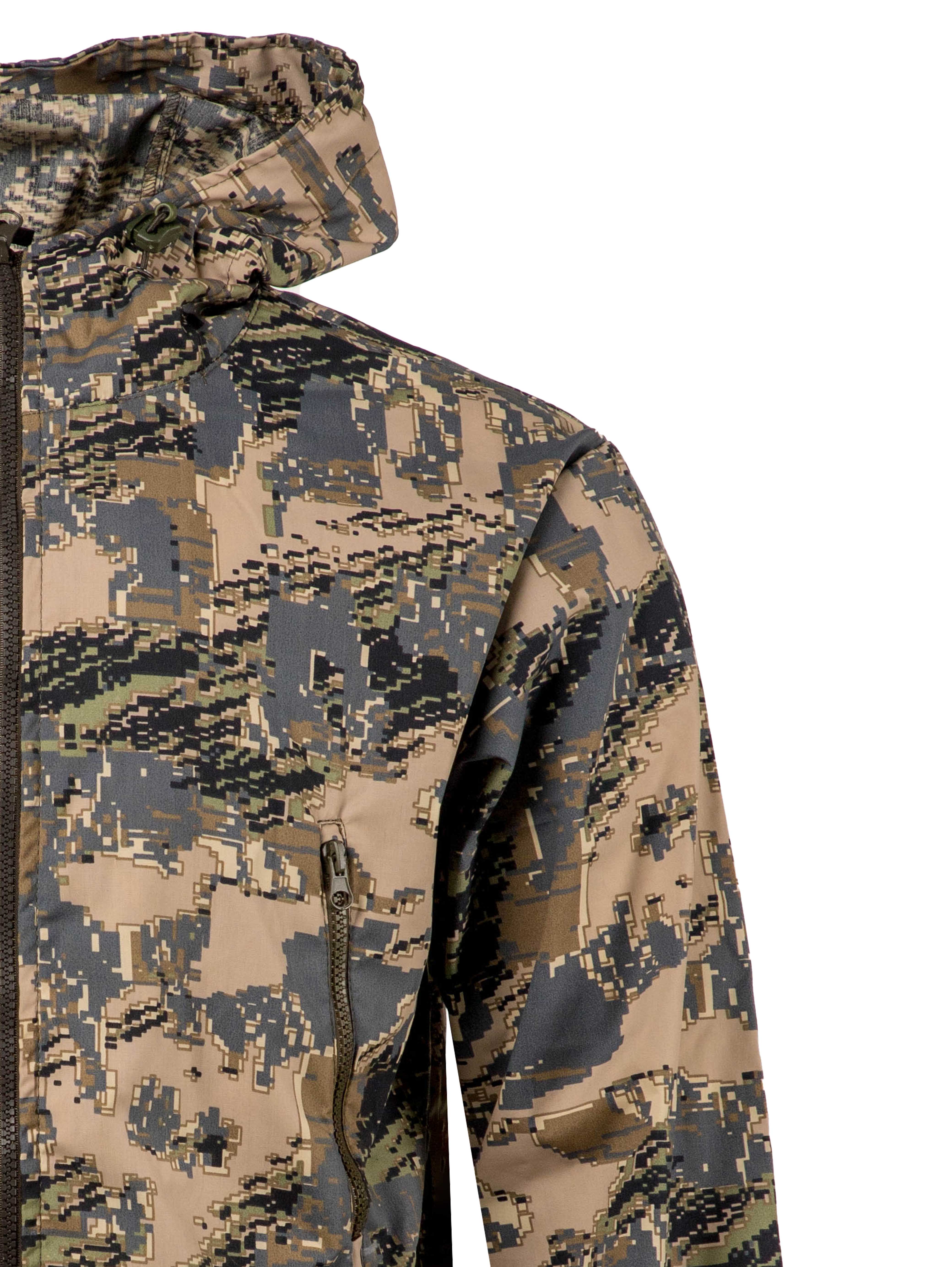 Мужской летний костюм «Аллигатор» выполнен из сорочечной ткани камуфляжной расцветки «лабиринт». Куртка застёгивается на молнию и имеет четыре кармана: два нижних и два нагрудных с тракторной молнией. Капюшон и низ куртки регулируются с помощью резинки с фиксаторами. Манжеты на рукавах также на резинке.