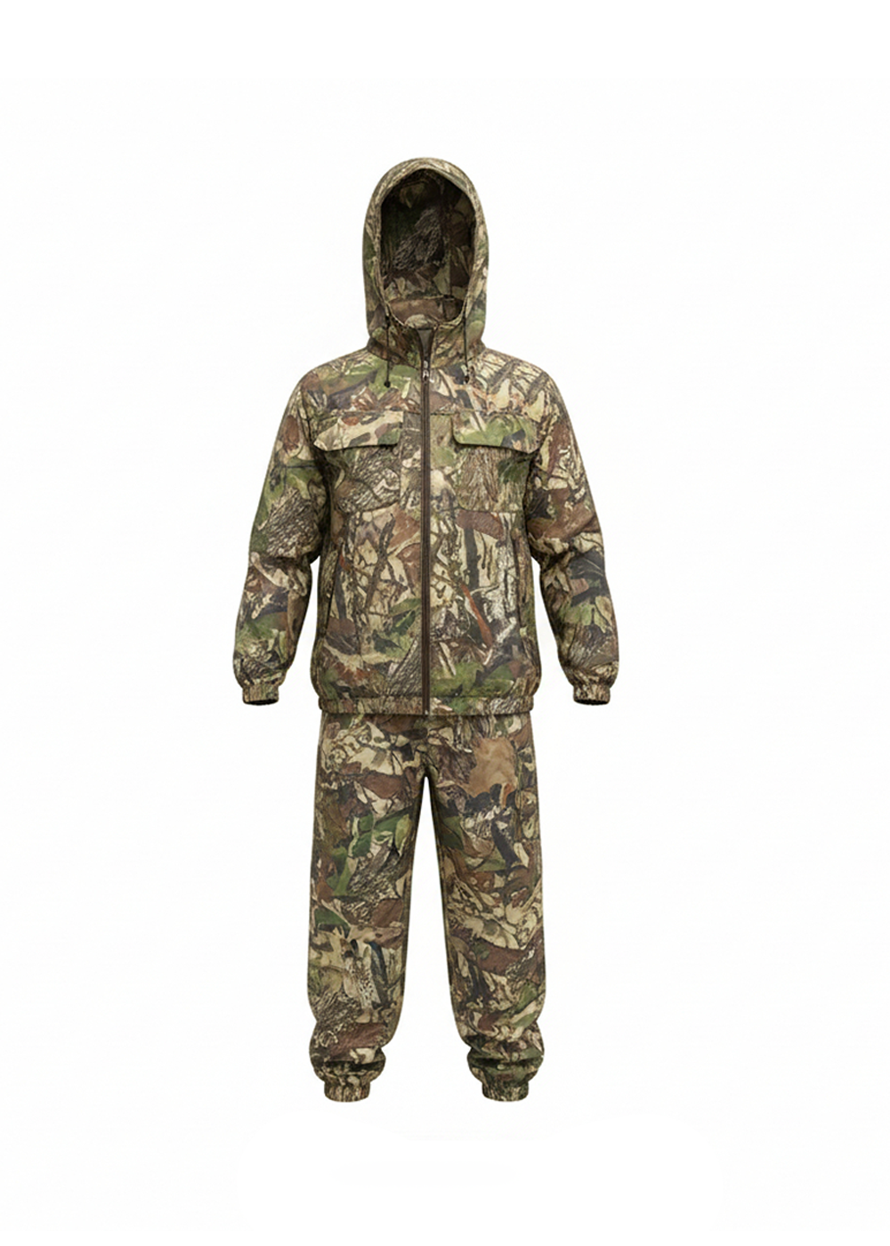 Костюм состоит из куртки и брюк. Куртка, укороченная, низ куртки на резинке, оснащена регулируемым капюшоном со съемной антимоскитной сеткой.